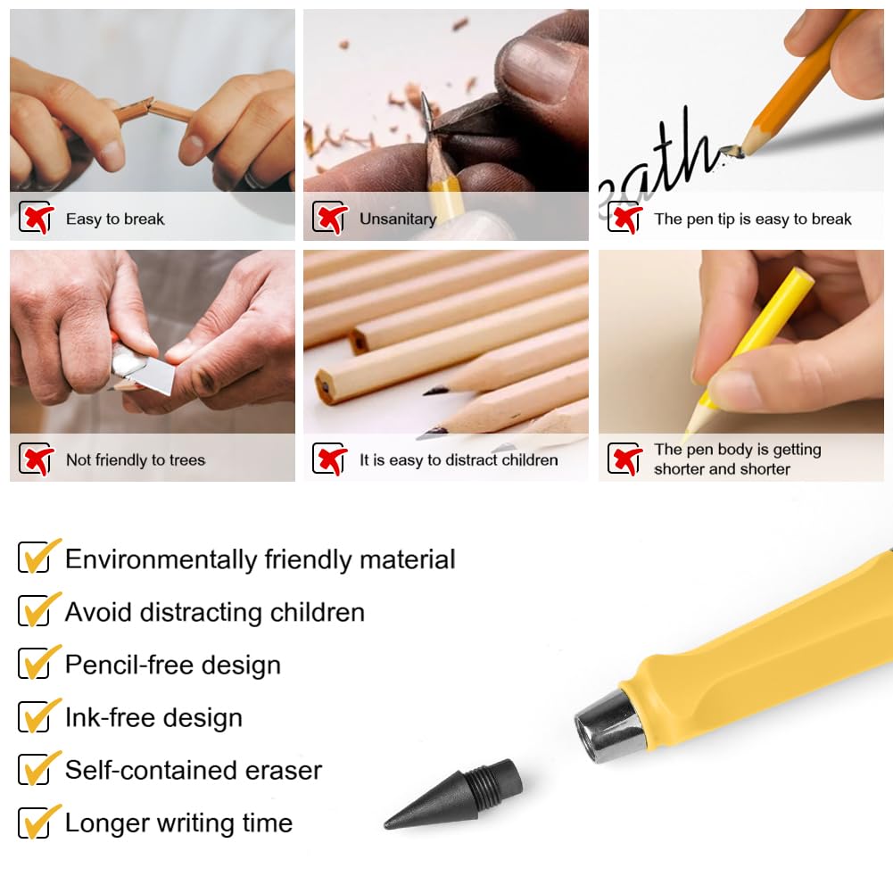 Crayon Éternel, Crayons Sans Encre Éternels Avec 6 Pointes De Remplacement Magique Infini D Criture Portable R Utilisable Effa Able Pour Crire Croquis D Crayons Sans Encre Éternels, 7Pcs Crayons Sans Encre Érnels Avec 7... Cadeau Créatif école Bureau ZEELYDE Lot De 6 Crayons Sans Encre, Crayon éternel, Sans Encre Crayon Magique Sans Encre Contenu de l'emballage : vous recevrez 6 feutres magiques, 6 pointes noires interchangeables, 6 pointes colorées interchangeables et 6 gommes. Qualité supérieure : fabriqué en matériau de haute qualité respectueux de l'environnement, durable, réutilisable et léger. 6 crayons avec 12 pointes de couleurs différentes. Pas de bois, pas d'encre - juste du graphite de qualité. Écriture fluide, effaçable comme un crayon classique... Ce kit est parfait pour les travaux créatifs et les pointes peuvent être facilement remplacées Les pointes de crayon en graphite sont faciles à effacer et offrent une excellente durabilité Polyvalent : parfait pour les croquis, les dessins, les notes et autres projets créatifs. Durable et durable : ces crayons magiques sont conçus pour remplacer jusqu'à 100 crayons traditionnels avec leurs pointes interchangeables sans avoir à tailler ou à changer la mine.