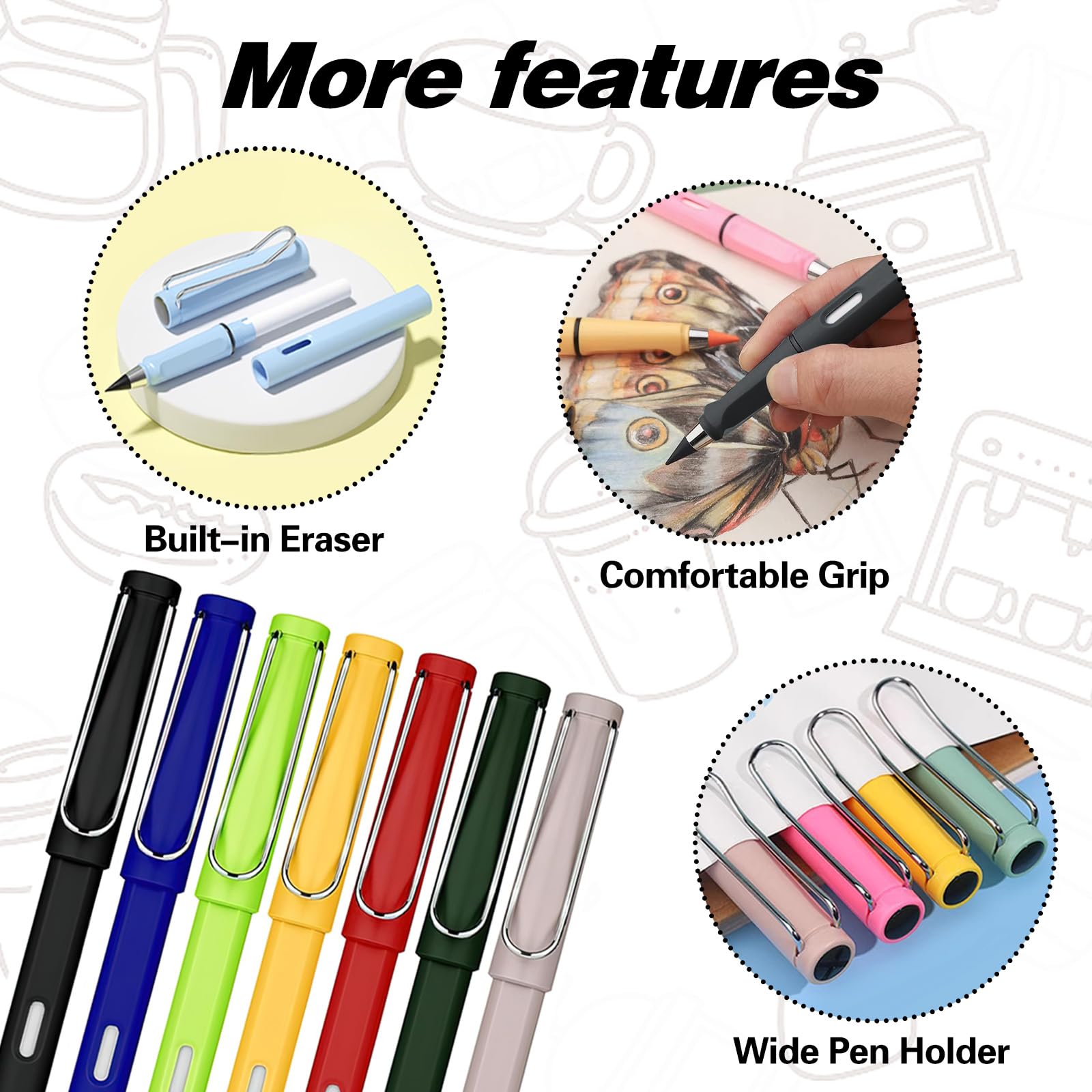 Son design incurvé est élégant et raffiné. Lot Crayon Enfant FainFun Lot De 2 Crayons éternels Avec Points De Rechange Alternative Crayon Bois écologique Chaque crayon que vous achetez est la meilleure protection pour la forêt. Lot de 12 crayons d'éternité : vous recevrez 12 crayons sans encre et 12 plumes interchangeables, chaque crayon éternité est livré avec une gomme à l'intérieur, beaucoup de quantité et de couleur pour vos besoins quotidiens et de remplacement. Matériau de qualité supérieure : la pointe du crayon est fabriquée en graphite, pas facile à casser, durable, le corps du crayon ne contient pas de matériaux en bois, la pointe est remplaçable, peut être utilisée à plusieurs reprises pendant une longue période, 1 crayon magique permanent correspond à 100 crayons ordinaires. Large gamme d'utilisation : ce crayon réutilisable peut être largement utilisé pour écrire, dessiner, esquisser, concevoir, c'est le premier choix d'articles de papeterie pour les étudiants, les enseignants, les designers, etc. Crayons sans encre éternels, 12 crayons sans encre + 12 têtes Écriture fluide Ce crayon sans encre peut écrire sur une grande variété de papiers avec une écriture claire, durable et fluide. Il peut également être fixé à tout moment dans un livre ou dans la poche d'un vêtement. Clip métallique Chaque crayon Eternity est équipé d'un clip métallique. Les 12 crayons éternité sont conçus avec un dégradé de couleur, tendance et unique, de haute classe et texture qui vous feront certainement tomber amoureux. C'est également un cadeau idéal pour elle. Fdit crayon infini 10 pièces crayon sans encre noir effaçable... Lot De 20 Crayons Éternels À Tête Interchangeable, Sans Encre... Quantité suffisante Vous recevrez 12 crayons permanents de différentes couleurs dégradées et 12 pointes interchangeables, afin que vous puissiez choisir la couleur qui vous convient le mieux en fonction de votre humeur. De plus, il n'est pas nécessaire de tailler les crayons, ce qui permet aux enfants de se concentrer davantage sur leurs études et de garder leur bureau bien rangé. Vous ne serez plus jamais à court de crayon ! Description du produit Êtes-vous prêt ? Avez-vous déjà vu un crayon qui n'arrête pas d'écrire ? Si ce n'est pas le cas, laissez cet incroyable crayon éternel vous offrir une expérience d'écriture super cool !