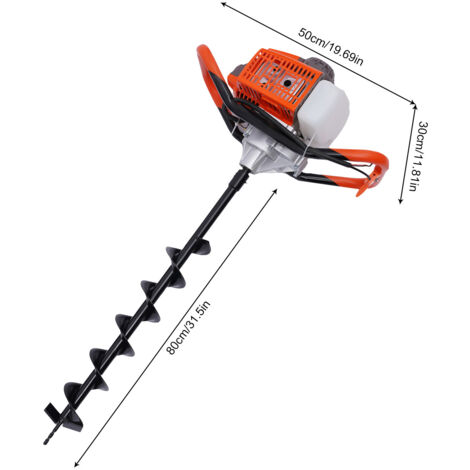 Excavatrice Creuse Le Sol Sur Un Chantier De Construction. Photo stock... Performance efficace : Moteur 2 temps 71CC avec 2., 3KW de puissance et vitesse jusqu'à 300RPM pénètre rapidement diverses terres, accélérant le creusement de trous pour plantation d'arbres ou construction de clôtures. Polyvalence de forets : 3 forets en acier d'alliage de diamètres 10cm, 15cm et 20cm (longueur 77cm) adaptent aux besoins différents de projets d'excavation, répondant à diverses exigences de taille de trous. Tarière 71cc 2,3 KW Tarière Thermique à Essence Foreuse De Sol Machine à Creuser Pour Plantation D'Arbres Et Trous De Poteau Tariere Thermique Après un certain temps de fonctionnement, veuillez ajouter du beurre en fonction de votre fréquence d'utilisation., 6., Avant de démarrer, veuillez appuyer plusieurs fois sur la bulle d'huile pour vérifier la présence d'huile dans le tuyau d'huile., 7., Veuillez permettre une légère différence de couleur causée par la lumière de prise de vue et une erreur de 1 à 3 cm due à la mesure manuelle, et assurez-vous que cela ne vous dérange pas avant de commander. Tarière thermique 2 temps 51,7 CC · Cylindré : 52 cm³ · Puissance nominale: 1,3kW · Couple de serrage maxi : 2.0 N.m · Mélange huile 2 temps : 30/1 · Mèches : 100mm... SpécificationsMatériaux : Acier allié, alliage d'aluminium, plastique, caoutchoucCouleur : Orange, noirStyle : ModerneTraitement de surface : Peinture au pistoletMoteur : Monocylindre deux temps, refroidi par airAssemblage requis : OuiCylindrée : 71 cm³Puissance maximale : 2,3 kWVitesse : 0-300 tr/minCapacité du réservoir : 1 lConsommation de carburant : 610 g/1,34 lb/kW/hCarburant : 25 n° 93 Essence : 1 huile moteur deux tempsPackage de forets :Longueur du foret : 77 cmDiamètre de l'interface : 30 mmDiamètre des forets : 10 cm ; 15 cm ; 20 cm/7,87 poLongueur de la rallonge : 30,5 cm/12 poDimensions du colis : 82 x 24 x 33 cm/32,28 x 9,45 x 13 poPoids brut : 9,1 kg/20 lbPoids net : 7,8 kg/17,2 lbMachine emballée :Dimensions du moteur : 50 x 34 x 24 cm/19,7 x 13,4 x 9,45 poDiamètre de l'interface : 20 mm/0,8 poDimensions du colis : 36,5 x 40 x 29 cm/14,37 x 15,75 x 11,42 poPoids brut : 10,1 kg/22,27 lbPoids net : 9,3 kg/20,5 lbContenu du colis :1 machine à creuser des trous de poteau1 mélangeur d'huile Bouteille1*Entonnoir1*Lanceur de rechange1*Lunettes de protection1*Kit d'outils1*Manuel en anglais3*Forets1*RallongeTous les accessoires de montageRemarques1., Veuillez lire attentivement le manuel et suivre scrupuleusement les précautions d'emploi pour une meilleure expérience., 2., Veuillez noter que ce produit sera expédié en deux colis., 3., Veuillez noter que les matériaux durs tels que la terre gelée, les briques, le sable, le gravier et les sols mixtes ne conviennent pas à ce produit., 4., Veuillez fermer la trappe d'aération avant de démarrer la machine à froid et l'ouvrir pendant le fonctionnement normal., 5., Avant de quitter l'usine, nous avons ajouté du beurre dans la boîte de vitesses. Accueil Jardin Tarière Outil Trou en Spirale Excavatrice Forage au Sol