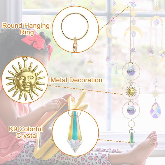 Cristal Pipa Grand carillon à vent avec cristaux attrape-lune et soleil... Réflexions magiques de la lumière : lorsque le soleil frappe le cristal, de magnifiques effets arc-en-ciel apparaissent sur les murs et les sols. Avec son design unique en forme de flamme et sa finition dorée, il ajoute une atmosphère élégante et mystique à n'importe quelle pièce. Convient également comme carillon arc-en-ciel pour chambre d'enfant ou comme décoration méditative. Parfait comme décoration de fenêtre, décoration de jardin ou pour des occasions spéciales telles que les mariages et les fêtes. Découvrez le cristal doré en forme de lune - Un élément décoratif fascinant qui transforme la lumière du soleil en jeux de lumière arc-en-ciel scintillants. Fabrication de haute qualité : le cristal attrape-soleil est fabriqué en verre incassable et en acier inoxydable durable. 5 Pièces Attrape Soleil Cristal, Kit Attrape-Soleil, Capteur Effets de lumière magiques : le cristal attrape la lumière du soleil et reflète de magnifiques jeux de lumière arc-en-ciel sur les murs et les sols. Facile à entretenir et à accrocher. Pendentif Décoration Cadeau Attrape-soleil En Cristal | Carillon éolien | Décoration Suspendue Accessoire Décoration Méditation Matériaux de qualité supérieure : le verre incassable et l'acier inoxydable garantissent une longue durée de vie et un aspect éclatant. Utilisation polyvalente : que ce soit comme décoration de fenêtre, décoration de jardin ou comme cadeau, ce cristal attrape-soleil est polyvalent et apporte de la joie dans n'importe quelle pièce. Idéal comme jeu de lumière, décoration de fenêtre ou comme partie de carillons arc-en-ciel. N1110]Carillon Éolien, Carillon Éolien En Bois, Beau Son Naturel... Utilisation polyvalente : ce pare-soleil peut être accroché aussi bien à l'intérieur qu'à l'extérieur. Évitez tout contact avec les produits chimiques. Que ce soit pour un anniversaire, la Saint-Valentin, Noël ou comme cadeau de mariage, il apporte joie et couleur dans la vie de vos proches. Que ce soit sur les fenêtres, sur les balcons, dans le jardin ou dans le cadre d'un carillon éolien, il attire tous les regards partout où la lumière et le vent lui donnent vie. Il suffit de nettoyer le cristal attrape-soleil avec un chiffon doux. Facile à accrocher et à entretenir : il suffit de l'essuyer avec un chiffon doux.
