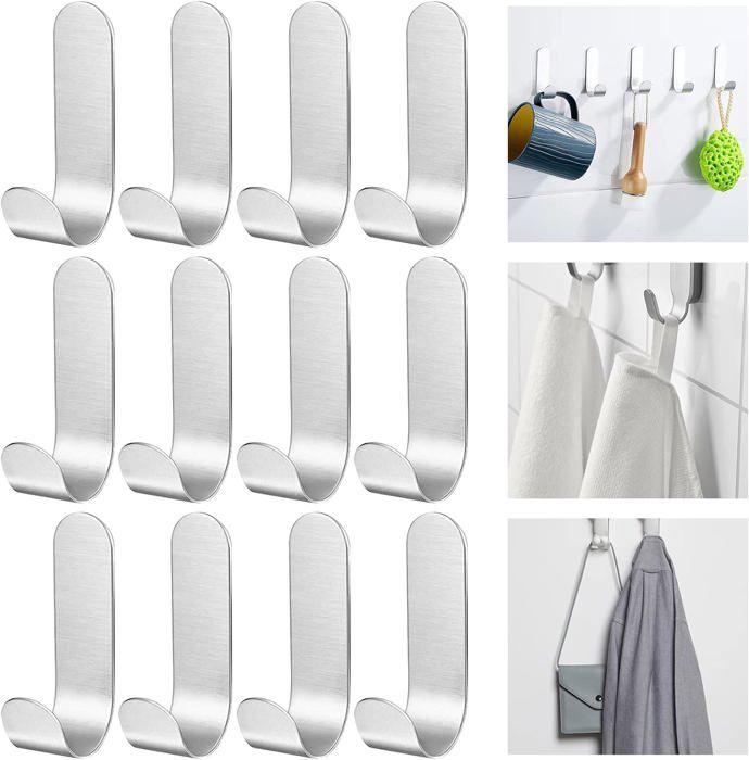 Il vous suffit de retirer la protection du film adhésif et de fixer le crochet sur la surface de votre choix. Idéals pour les étudiants, les locataires ou toute personne cherchant à organiser son espace sans endommager ses murs. Crochets Adhésifs Sans Perçage Crochet Adhesif Mural Pour Serviettes,crochets De Douche Muraux En Crochet Pour Serviettes Vêtements Crochet adhésif - SANAG - Lot de 20 - Transparent - 10kg Max... Fixation Auto-Adhésive - Aucun Perçage Nécessaire : Profitez d’une installation facile et rapide sans avoir à percer des trous dans vos murs. Organisez votre espace de manière simple et élégante avec ces crochets adhésifs en acier inoxydable. Pour un rangement pratique et une installation sans tracas, ces crochets adhésifs en acier sont le choix idéal pour tous ceux qui recherchent une solution de rangement fonctionnelle et esthétique, sans les contraintes du perçage et des vis. Que ce soit dans votre chambre, votre salle de bain, ou votre cuisine. Ces crochets autocollants noirs utilisent un adhésif puissant qui assure une fixation solide sur toutes les surfaces lisses et dures. Ces crochets muraux autocollants sont conçus pour être fixés facilement sur des surfaces lisses et dures telles que le carrelage, les murs peints, le verre ou le métal. Les crochets sont prêts à l'emploi et ne nécessitent aucun outil, ce qui en fait la solution. Une fois installés, ces crochets sont prêts à accueillir des objets allant des serviettes, aux vêtements, aux clés, en passant par des ustensiles de cuisine ou des sacs. Spécifications techniques. Matériau : Acier inoxydable 304; Capacité de charge : 3 kg par crochet ; Installation. Installation sans perçage grâce à un adhésif... Design Moderne et Discret - Parfait pour Tous les Espaces : Grâce à leur finition noir mat, ces crochets muraux autocollants apportent une touche de sophistication et s’intègrent parfaitement à tous les types de décor, qu’il s’agisse de votre cuisine, de votre salle de bain ou de votre bureau. Polyvalence d'Utilisation - Idéal pour Divers Espaces et Objets : Ces crochets adhésifs sont parfaits pour accrocher des serviettes, des clés, des sacs, des vêtements, ou même des ustensiles de cuisine. Il suffit de retirer la protection de l'adhésif et de fixer le crochet sur la surface de votre choix. Lxtness 12 Pièces Crochet Adhesif Mural, Crochets Adhesifs pour