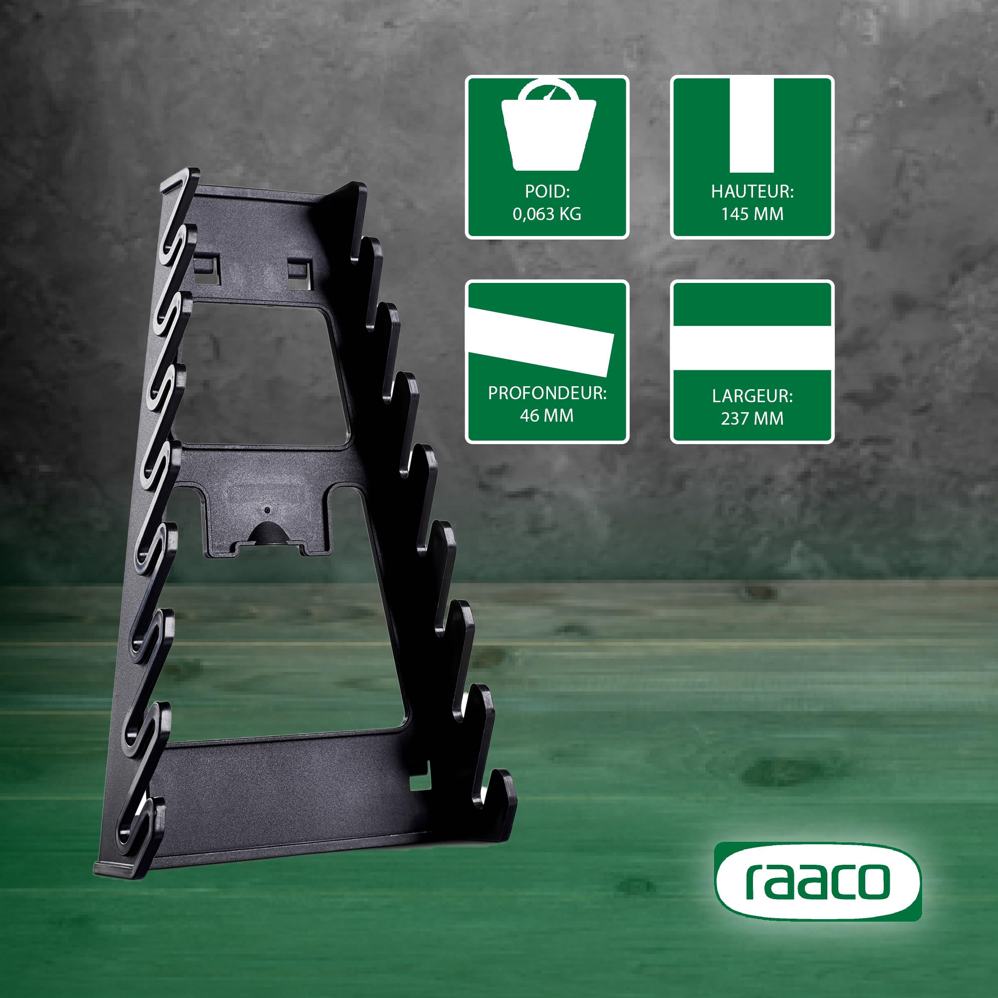 Support de rangement pour clés à molette, pour 8 clés Utilisation : convient à la plupart des types de clés. Support Rangement Tournevis Clés Crochet De Panneau Perforé, Crochet D'organisation De Panneau Perforé Support Rangement Clés Matériau : polypropylène. Rangez-les à l'aide de notre porte-clés polyvalent qui se monte facilement sur le panneau de rangement Garage . Organisez les outils et les clés de différentes tailles Rangement mural pour clés à molette, support de clé pour panneau perforé robuste, rangement d'outils multifonctionnel, organisation de tournevis mural pour... Organisateur résistant aux secousses : fabriqué avec un matériau PP solide, ce produit évite la déformation et reste stable lors de l'utilisation, ce qui le rend idéal pour garder les clés en sécurité au fil du temps Remarque : En raison des différents paramètres d'éclairage et d'écran, la couleur de l'article peut être légèrement différente de celle de la photo. Installation facile : aucun outil n'est nécessaire pour les fixer en toute sécurité sur un panneau perforé, simplifiant le processus d'organisation de vos outils pour un environnement organisé Dimensions du produit : environ 22 x 12 cm. Organisation murale : un système de suspension pratique assure une bonne classification des outils et maximise l'utilisation de l'espace mural, offrant une installation propre et structurée, idéale pour les ateliers et les garages de toute taille Transformez votre façon de ranger les outils avec cet organisateur de clés multifonctionnel, offrant une solution compacte mais efficace pour la gestion des outils.