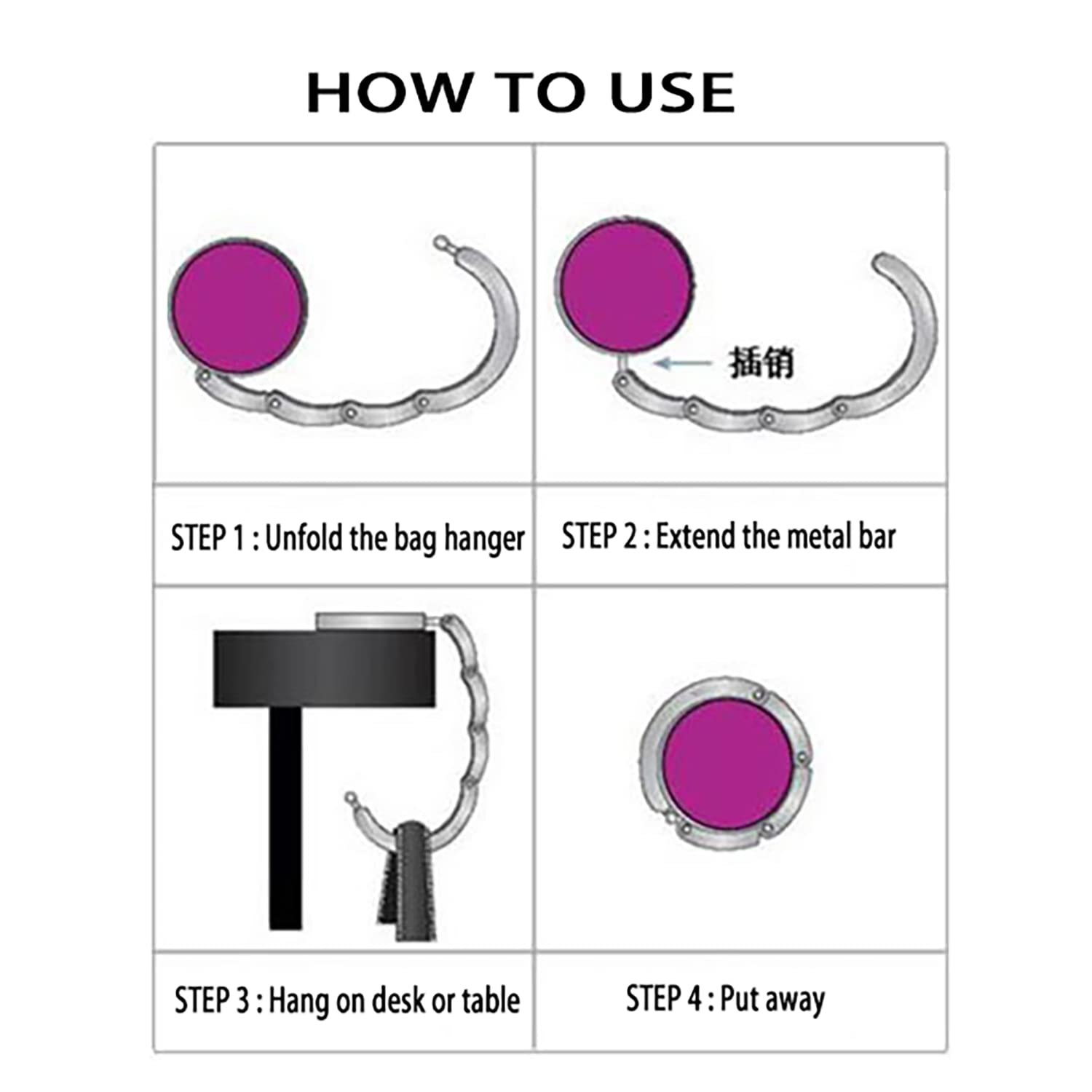 OU À D'AUTRES FINS : Bien sûr, le crochet peut également être utilisé pour d'autres choses, comme des écouteurs ou un parapluie. Porte-sac à Main Table Crochet Sac Table Crochet De Table Aidqxbaoer - Lot De 2 - Aluminium Pliable - Porte-Sac Jusqu'à 3kg - Anti-Dérapant Accroche Sac Antidérapant Crochet à Sac Pour Table Après la fixation, veuillez retirer le film protecteur. Crochets et rails,Crochet de sac à main pliable en métal, crochet de... EN UN COUP D'ŒIL : Diamètre disque : ø 3,4 cm - Longueur hameçon : 8,5 cm / Poids : 45 g (l'unité) / Matière : alliage d'aluminium / Poids maximum par hameçon : 3 kg COMPACT ET PRATIQUE : Grâce à ses dimensions compactes, le porte-sac se range facilement dans votre sac pour le transport. Accroche-sac,Sac de rangement suspendu sur la porte, sac de rangement... Il est facile à coller et à enlever. Il est livré avec du ruban adhésif double face. Le support est simplement plié et maintenu avec un aimant pour économiser de l'espace. Crochet À La Table Étudiant Crochets De Pour Suspendre Des Sacs Déchirez simplement le ruban adhésif double face à l'arrière, puis collez-le sur le mur. Tient sur lui-même : le dessous du support de sac à main a un revêtement antidérapant - rien ne glisse et la surface de la table est protégée !