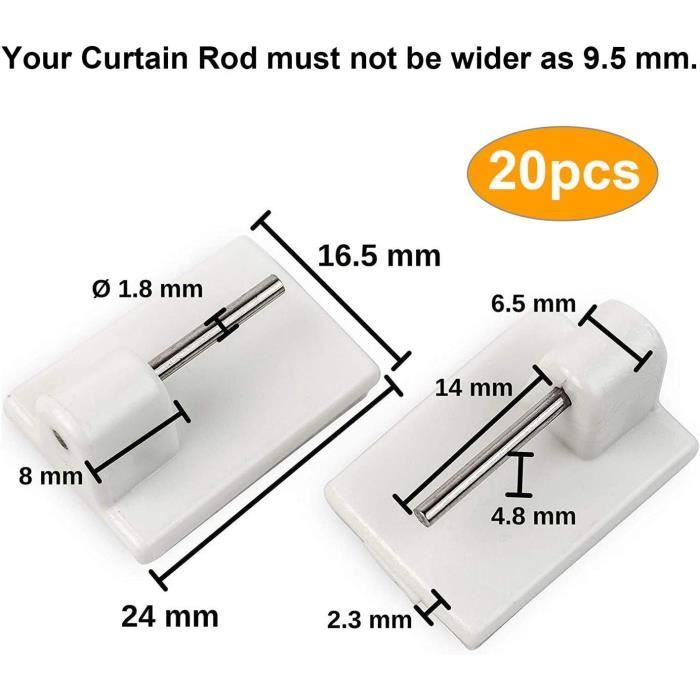 Convient pour une utilisation sur des surfaces lisses telles que les carreaux, le verre, le métal, les miroirs, le bois, etc. Support Tringle Rideaux Sans Percage Tringle Rideau Sans Percage Jowfay 20 Crochets Auto-adhésifs, Crochets Muraux Attache Fixation Rideau Supports Pour Tringles Rideaux Voilage Crochets Adhésifs Matériau de haute qualité: Le crochet à rideau est fait de tige en plastique et en métal de haute qualité, ce qui n’est pas facile à casser et durable. Taille et quantité · 40pcs crochet fenetre pvc, longueur 2,8cm, hauteur 1,2cm, et largeur 1,9 cm, tige 1,5cm, et sa diametre 2mm, convient aux barres de support... Le crochet peut être retiré en chauffant avec un sèche-cheveux. Le crochet à rideau auto-adhésif est fait de plastique et de tiges métalliques de haute qualité, et il y a un autocollant de haute qualité en bas pour une forte adhérence et durabilité. Crochets adhésifs - OKUMGGYJ - 20 Paquets - Blanc - 2,5 x 1,7 cm - Durable et Facile à Installer · Lot de 4 supports de tringle à rideau sans perçage,support de... Les crochets peuvent être utilisés dans les salles de bains, les murs, les fenêtres, les cuisines, les chambres, les balcons, etc. Facile à installer: pas de perçage, pas d’outils, il suffit de décoller le papier adhésif et de le coller sur un mur sec. Tout ce que vous avez à faire est d’arracher le papier adhésif et de coller le crochet du rideau dessus. Fyihoxi 10 Pièces Support Tringle Rideaux Sans Percage Noir, Supports Forte viscosité: Il a une force d’adhérence élevée. Les crochets de tringle à rideau avec des épingles métalliques sont idéaux pour une utilisation sur les fenêtres des salles de bains, des cuisines.