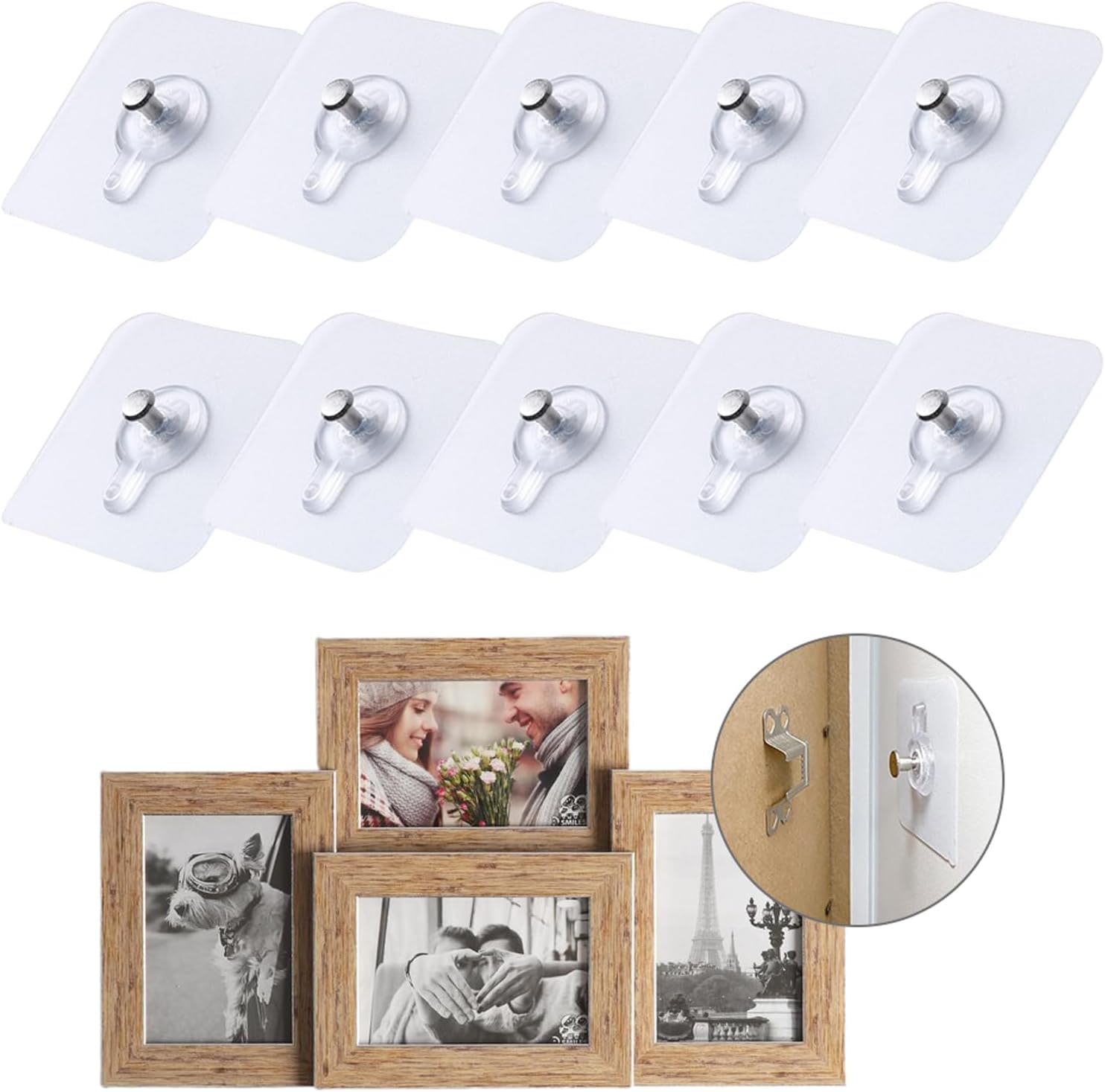 Invisible et pratique à la fois. Spécifications Matériau : ABS de qualité Couleur : blanc Taille : 75 × 30 mm Contenu : 16 crochets adhésifs Conseil d’utilisation : appliquez uniquement sur des surfaces lisses, propres et sèches pour une adhérence optimale. Accroche Tableau Sans Percer 12 Crochets Autocollants Pour Tableaux Sans Percer, Accroche Crochet Sans Perçage Pour Tableaux 16 Pièces Olakin Crochet Mural[30 Pièces], Crochets Muraux pour Cadre Photo, Kit de Suspension de Tableaux, Clous Mural pour Suspendre, pour Accrocher des Tableaux... Avec ce kit de crochets adhésifs, profitez d’une solution simple, propre et fiable pour personnaliser votre espace sans abîmer vos murs. Conçus pour allier praticité et solidité, ils vous permettent d’aménager et décorer votre intérieur sans abîmer les murs. Utilisation polyvalente Parfaits pour une large variété de surfaces comme le carrelage, le bois, le verre ou les murs peints. Idéal pour accrocher cadres photo, horloges, miroirs, tableaux et décorations. Les crochets autocollants se posent en quelques secondes et ne laissent pas de trous. Fini les trous disgracieux et les réparations coûteuses : collez, accrochez, et profitez d’un mur propre. Installation simple et rapide: Il suffit de décoller le film protecteur et de coller le crochet sur une surface propre et lisse. Vous pouvez changer ou retirer vos cadres sans laisser de traces de colle. Chaque crochet supporte jusqu'à 5 kg – idéal pour tes photos, miroirs, lumières décoratives ou même des petits tableaux. Dimensions : 60x60 mm. Collage ultra... Forte adhérence et sécurité: Équipés d’un adhésif puissant, ces crochets supportent un poids stable et empêchent vos cadres, miroirs et décorations de tomber. Pas besoin de perceuse ni de clous. Esthétique discrète Le crochet reste invisible derrière le tableau ou la décoration, préservant l’harmonie de votre intérieur. Crochets auto adhésifs transparents-10 Pièces Adhesif Accroche Tableau