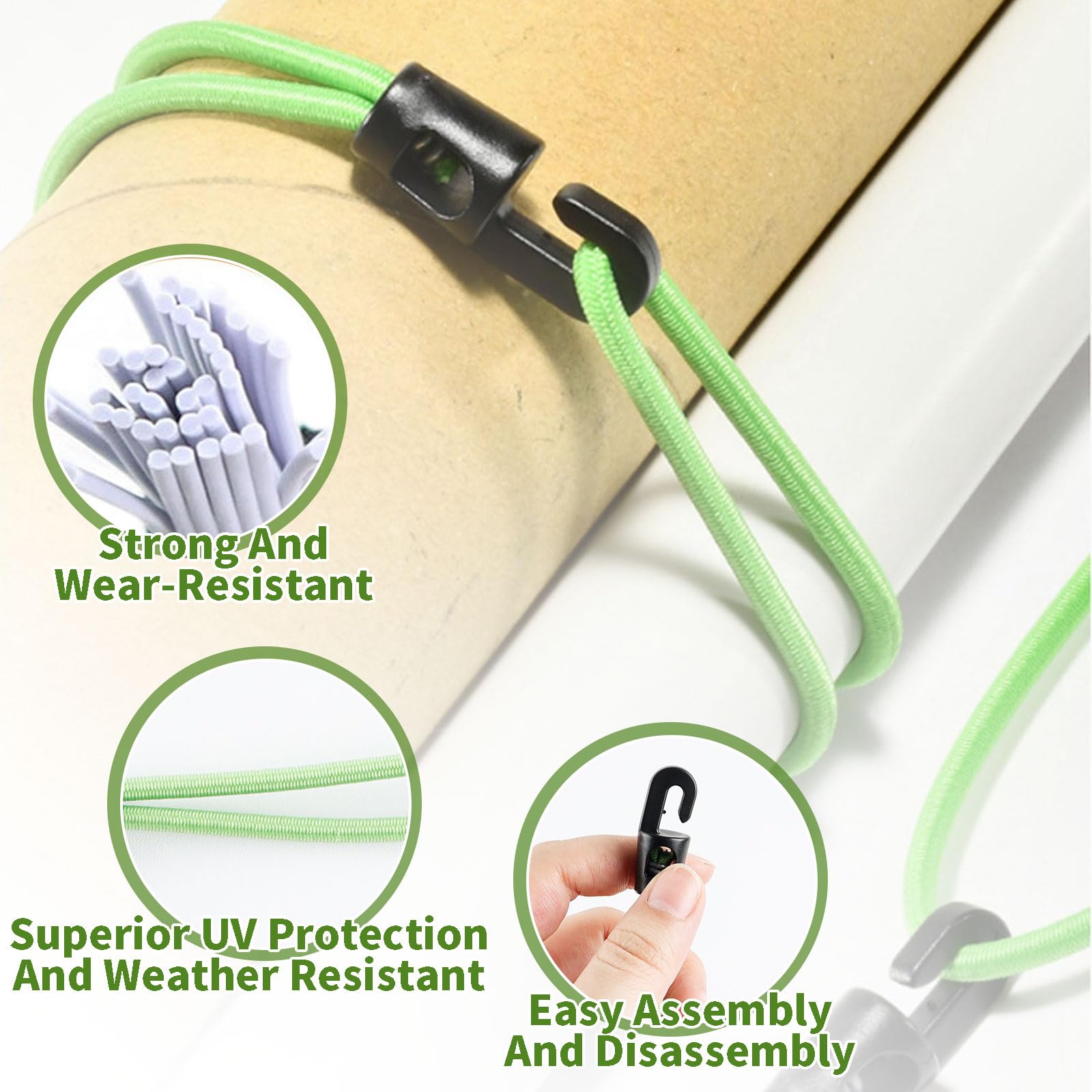 Tendeur Pour Tente Tendeurs Elastique Avec Crochets, Lot De 15 Cordon Élastique , 25cm élastique Tension Réglable Système de crochet efficace : chaque cordon est livré avec des crochets solides qui se fixent en toute sécurité aux poteaux de tente et aux piquets de sol... Tendeur Elastique 20 Pièces Tendeur à Boule Élastique Corde Elastique Le crochet est fabriqué en plastique haute résistance. Tendeurs Caoutchouc avec Boule, 30 Pièces Tendeur Elastique Noir... Comparé aux crochets en fer, il ne rouille pas, est résistant à l'usure et stable et peut être utilisé pendant longtemps. Largement utilisé dans les tentes, les bâches, le camping, les hangars à bateaux, les jardins, les balustrades et de nombreux autres scénarios. | Solide et durable | - Le sandow pour bache avec crochet est fabriqué en latex de haute qualité, caractérisé par une excellente élasticité et durabilité. | Forte puissance télescopique | - La tendeur elastique avec crochet peut être facilement étendue pour s'adapter de manière flexible à différents besoins de fixation.