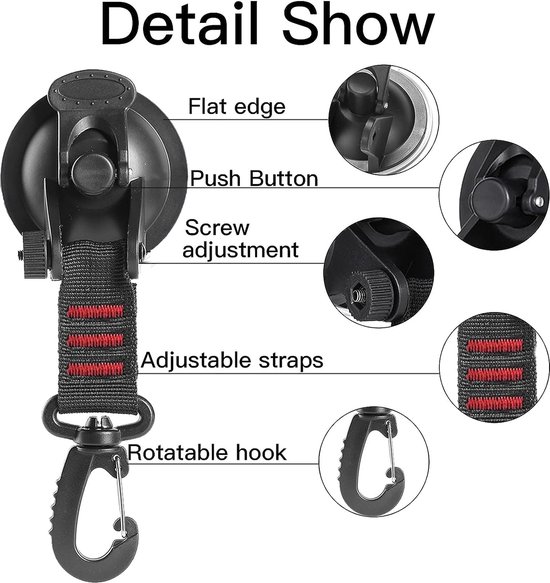 Nous vous offrons la meilleure solution. Fixation Sans Perçage Crochets à Ventouse, Lot De 4, Kit De Camping, Ancrage Extra Fort Auvent Pour Camping Car Notre ancre à ventouse avec crochets de fixation peut également être utilisée dans les salles de bains, cuisines et autres domaines. Matériaux de haute qualité : ces crochets à ventouse d'extérieur sont fabriqués en polypropylène et TPU de haute qualité, résistants à l'usure et incassables, offrent une grande adhérence et un effet antidérapant amélioré. Large gamme d'utilisations : ces crochets à ventouse de camping avec crochets sont parfaits pour fixer des tentes, des auvents, des parasols et des bâches sur des voitures, des valises ou des camionnettes pour le camping en plein air. La ventouse puissante est un meilleur moyen de fixer presque tout. Lot de 4 crochets ventouse en inox - Poids du colis : 400 g. Forte capacité de charge : cette ventouse forte camping a une capacité de charge élevée et peut supporter des objets lourds jusqu'à 35 kg (77 livres) sans montrer de signes de chute. Promesse de service : si vous avez des questions ou un mécontentement avec le produit, n'hésitez pas à nous contacter. Nettoyez la surface avec un chiffon de nettoyage avant chaque utilisation pour assurer une adhérence optimale Choisissez une surface propre et lisse comme le verre, le carrelage, l'acier inoxydable, etc., pour la fixation. Ventouse de la marque CAMP4 avec crochets pour fixer une solette, un auvent ou une toile d'ombrage à l'extérieur de votre camping-car ou fourgon aménagé. Cette ventouse possède des crochets vous permettant d'attacher et de fixer plus facilement votre solette ou votre auvent de fourgon aménagé Ventouse robuste et résistante]: La nouvelle ventouse a une base de gel collante solide, qui a une adhérence élevée et un meilleur antidérapant... - Dimensions : diamètre 10 cm. Liste des colis : 4 x Ventouses de camping extra fortes Remarque : 1., Avant d'acheter, assurez-vous que la taille du produit correspond à vos besoins pour éviter une expérience d'achat désagréable., 2., Les mesures étant prises à la main, les tailles indiquées peuvent varier de 1 à 2 cm., 3., En raison de la différence de réglage de l'écran et de la lumière, la couleur peut être légèrement différente de la photo. Les ventouses puissantes créent une dépression, de sorte qu'elles adhèrent fermement aux surfaces planes, sans colle - Matériau : PP et TPU., - Coloris : noir.