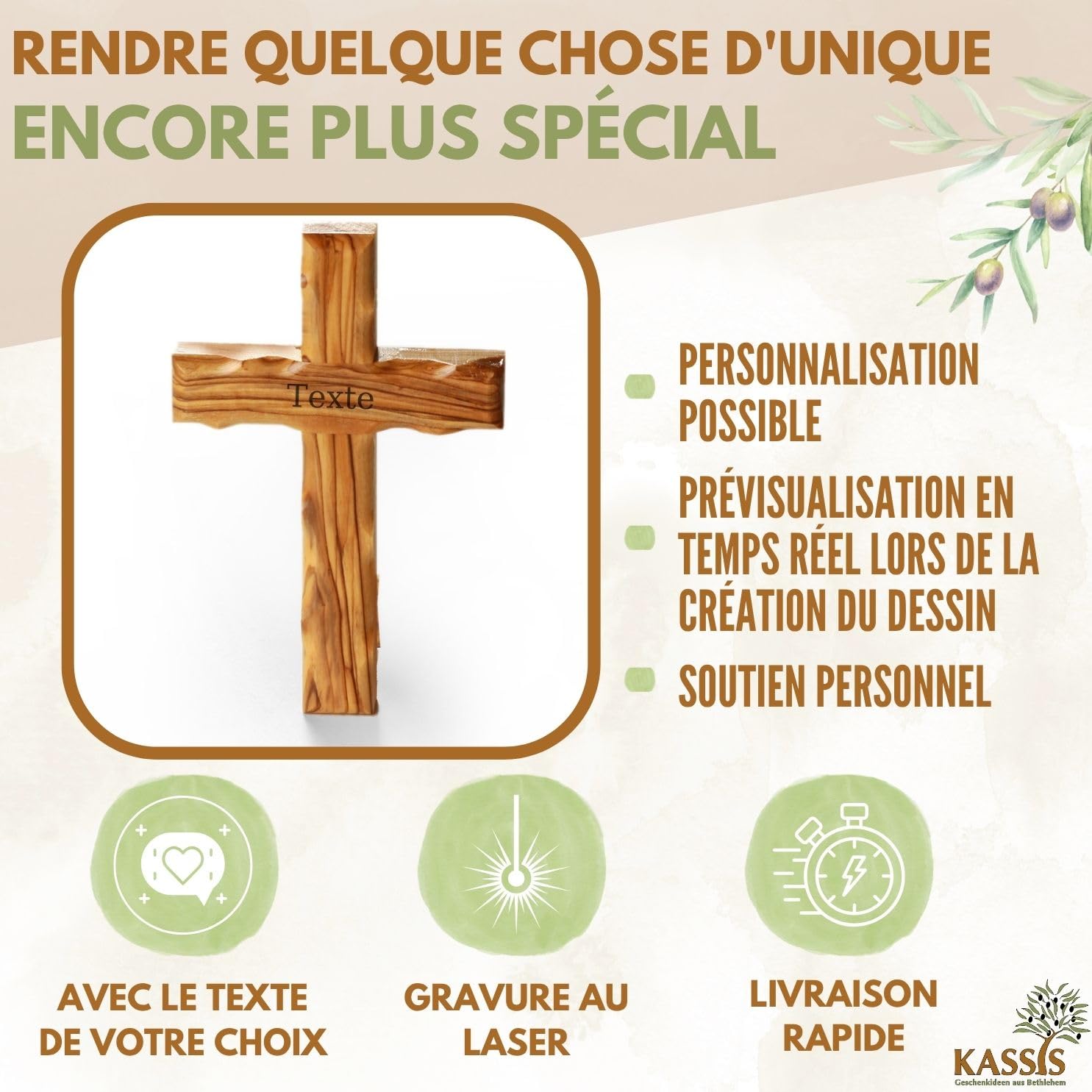 L'ensemble est livré dans une pochette en velours doux qui protège la croix et est idéal pour un rangement élégant. Avec une taille d'environ 6,5 x 4,5 cm et un poids d'environ 16 g, la croix tient confortablement dans la main et dégage une chaleur naturelle. Question 5 : à quelles occasions la croix est-elle particulièrement adaptée ? Réponse : il est idéal comme cadeau de baptême, de communion, de confirmation, de confirmation ou comme compagnon de pèlerinage ainsi que comme symbole personnel de foi. Bijou Religieux Cadeau Baptême Communion Most Original Gifts Pendentif Croix De L'Est En Bois D'olivier Authentique De Bethléem Dans Une Pochette En Coton Naturel Avec Christogramme – Croix Pour Homme Et Femme Pendentif Croix Bois D'olivier Bethléem En outre, c'est un compagnon populaire pour les pèlerinages ou les pèlerinages, car il vient de Bethléem, la ville natale de Jésus. L'œillet en métal robuste assure un maintien sûr et facilite le port au quotidien. Question 3 : peut-on porter la croix tous les jours ? Réponse : oui, grâce à la fabrication robuste et à la sangle solide, la croix est adaptée à un usage quotidien et confortable à porter. Elle est l'expression de la foi, de l'espoir et de la protection qui doit accompagner le porteur dans ses voies. Les parents et les parrains l'apprécient comme cadeau pour les baptêmes, les communions ou les confirmations. Béni et certifié : chaque croix est béni et consacrée individuellement par un clergé catholique selon un rite traditionnel, lui donnant sa signification spirituelle et sa fonction symbolique de protection. Le grain rappelle les oliviers centenaires qui possèdent un pouvoir symbolique biblique et représentent la paix, la foi et la constance La bénédiction ecclésiastique est particulièrement remarquable. Avec sa taille d'environ 6,5 x 4,5 cm et un poids d'environ 16 g, le pendentif est léger mais robuste et agréable à porter. Le pendentif est livré avec un certificat qui vise à confirmer la consécration obtenue et à renforcer la foi qui le porte. Pièce unique avec une force symbolique : le bois d'olivier étant un matériau naturel, aucune croix ne ressemble à une autre, ce qui rend chaque exemplaire unique avec un grain individuel. Grâce à son grain individuel, chaque croix devient unique, qui non seulement attire visuellement mais transmet également une profondeur spirituelle. Les pèlerineurs y voient un souvenir de la visite des lieux saints. Ainsi, l'acheteur reçoit un ensemble complet qui peut être porté ou offert immédiatement sans avoir à acheter d'accessoires supplémentaires. Chaque pièce est unique fabriquée à la main, dont la structure individuelle en bois souligne son caractère particulier. Pendentif croix en bois d'olivier St Benoît #J168 Sac doré avec ruban noir 5x7 | La Ferme Martinette Le certificat inclus confirme la consécration et fait du pendentif plus qu'un simple bijou. GRANDE CROIX DE Corps En Bois D'olivier Fait Main De Jérusalem, Béni... Grâce à sa taille pratique, il peut être porté discrètement ou présenté délibérément de manière visible. La bénédiction confère à chaque spécimen un caractère religieux unique qui le distingue des bijoux ordinaires. Les bords de la croix sont finement polis, ce qui crée une surface lisse qui tient confortablement dans la main. Matériau et origine : ce pendentif en forme de croix est fabriqué en bois d'olivier véritable, directement de Bethléem en Terre Sainte et est connu pour son grain caractéristique. Il est également adapté pour les pèlerinages ou comme compagnon au quotidien pour garder la foi et la protection toujours avec vous. Pratique, de qualité supérieure et prêt à l'emploi Le pendentif en forme de croix allie la tradition artisanale de Bethléem au symbolisme chrétien et transmet l'authenticité et la profondeur spirituelle. Il est livré avec un bracelet noir d'environ un cordon de 80 cm de long et est donc idéal comme compagnon personnel au quotidien ou comme cadeau pour des occasions spéciales. Mais les personnes qui recherchent du réconfort ou de l'orientation spirituelle peuvent également bénéficier de cette croix. Avec cette croix, les parents, les parrains ou les grands-parents offrent non seulement un bijou, mais un symbole de foi, de communion et de protection. Idéal également comme distributeur de réconfort ou signe spirituel dans des situations de vie difficiles Ainsi, la croix est idéale pour les occasions religieuses, les chemins de croyance personnels et les moments de réconfort au quotidien Ce pendentif en forme de croix de Bethléem allie tradition, travail manuel et foi dans un bijou unique.