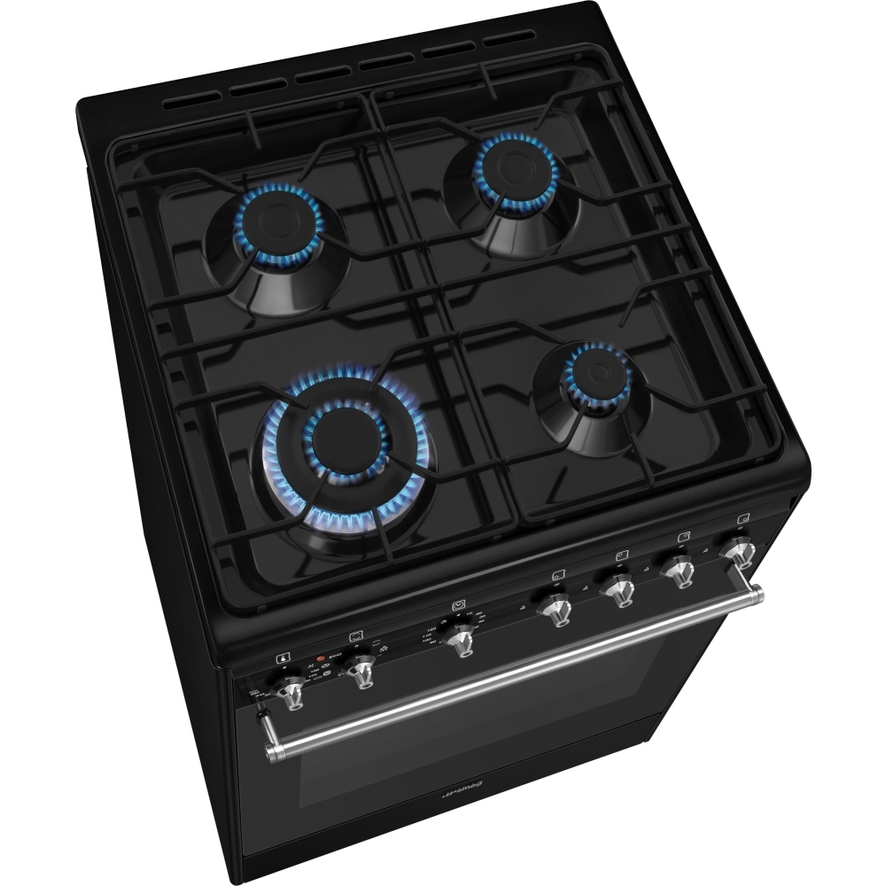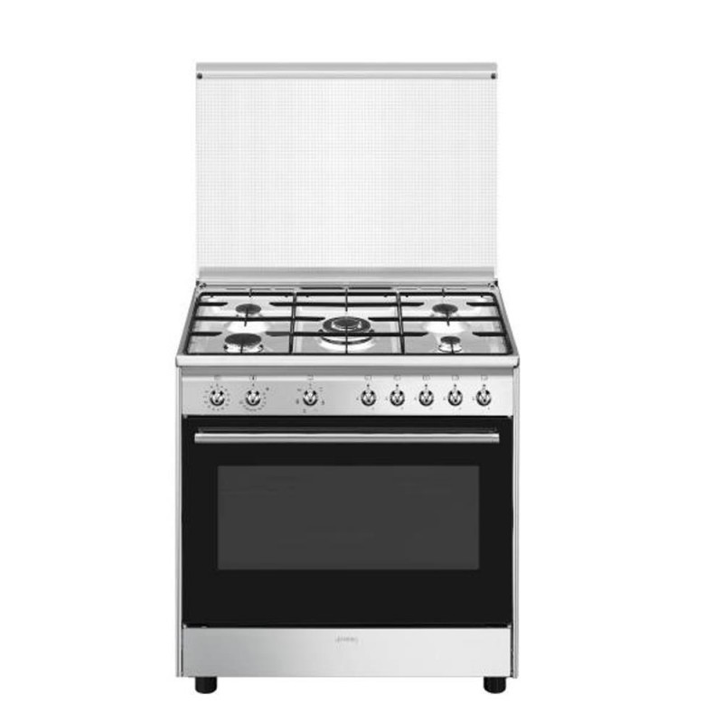 Cuisinière électrique Cucina Elegante Smeg Concert CX61GMBL Cucina A Gas Elettrico - Nero Classe A Cucina Gas Elettrica Smeg Cuisine Smeg Noir 60cm Cucina CX61GMBL a libera installazione con piano cottura gas 4 zone e forno elettrico termoventilato con capacità 70 litri. La funzione Vapor Clean facilita la pulizia attraverso l'impiego del vapore che si genera inserendo nell'apposita imbutitura d... GLEM GAS SB965MBK CUCINA 90X60 PIANO COTTURA 5 FUOCHI A GAS FORNO ELETTRICO MULTIFUNZIONE CLASSE A Colore Nero Carbone 8059606960487 Classe d'efficacité énergétique : A, Consommation d'énergie (conventionnelle) : 0,8 kWh, Échelle d'efficacité énergétique : A+++ à D. Smeg Concert CX61GMBL. Tipo di prodotto: Cucina, Colore del prodotto: Nero, Tipo di controllo: Manopola. Tipo di piano cottura: Gas, Numero totale di... Smeg Concert CX61GMBL Cuisine électrique Gaz Noir A Type de plaque : Gaz, Nombre total de feux : 4 brûleurs(s), Nombre de brûleurs: 4 brûleurs(s). Taille du four : moyenne. Smeg Concert CX61GMBL Type de produit: Cuisine, Couleur du produit: Noir, Type de contrôle: Rotatif.