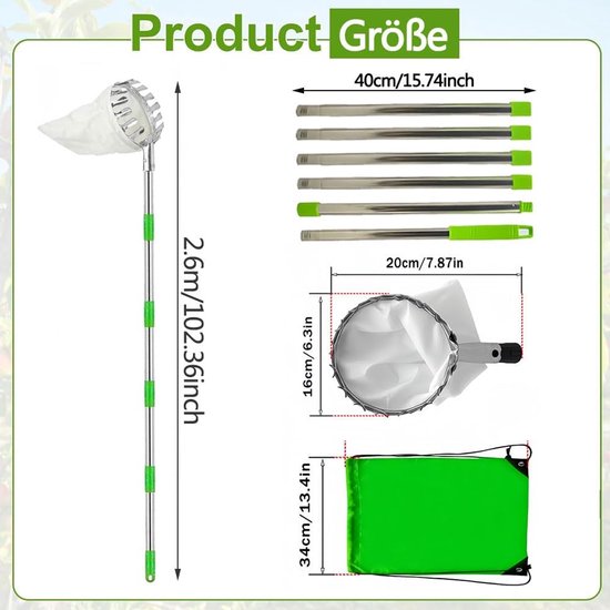 Diamètre : environ 15 cm. Pour Pommes Poires Agrumes Cueille-fruits Avec Sac En Coton Indéchirable - En Métal Solide - Aide Outil Récolte Sans échelle Très facile à utiliser. Robuste et durable : le cueille-fruits est fabriqué en métal de haute qualité et est assez durable pour durer longtemps. Facile à récolter : le panier à tête de cueillette de fruits a des dents métalliques qui peuvent bien casser les tiges sans blesser vos fruits. Facile à récolter et très durable. Cueille fruits 14cm métallique avec sac de récupération - Jardin Spécifications: Nom : cueille-fruits Matériaux : métal et coton., Couleur : argenté. Profondeur du sac : environ 20 cm., Contenu : 1 cueille-fruits. Convient pour : pêche, poire, orange, etc. Moins de fatigue des mains : le cueilleur peut porter les fruits sans se déformer, se plier ou se casser, et est assez robuste pour vous offrir une expérience de cueillette économique avec moins de fatigue des mains. Large application : nos cueille-fruits sont parfaits pour cueillir vos pommes, mangues, kiwis, agrumes, poires, pêches et autres fruits. AREBOS 1x Premium Sac en bois grand solide et indéchirable pour bois... Cueille-Fruits avec Sac,Fruits Cerise Outil à Cueillir de Fruits 3.2... Les dents annulaires coupent les fruits et les laissent tomber dans le sac pour les recueillir. Convient pour : maison, parc, ferme, jardin, etc. En raison de la mesure manuelle, il peut y avoir une marge d'erreur dans la taille du produit. Les fruits peuvent être cueillis sans monter sur une échelle, ce qui signifie que les fruits récoltés ne tombent pas au sol., 3., Amusez-vous à cueillir des fruits : ce cueille-fruits est livré avec un sac et est bien fait.