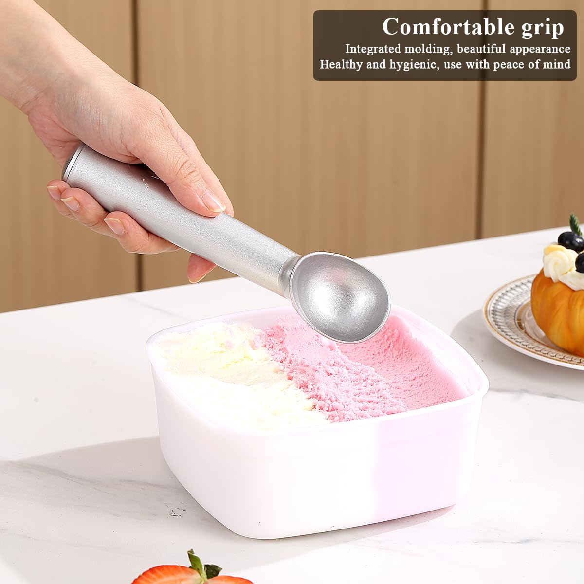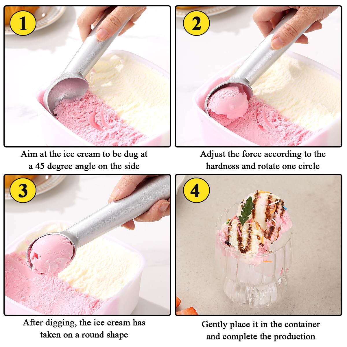 Spring Chef Cuillère à Glace Robuste Avec Poignée Confortable - Cuillère à Glace Professionnelle Pour Gelato, Sorbet, Pâte à Biscuits, Melon, Yaourt Glacé... Libération fluide de la boule : permet une formation facile et parfaite de boules de crème glacée, ce qui rend la cuillère sans effort et pratique. Durable et robuste : fabriqué en métal de haute qualité, il est très durable et peut résister à une utilisation à long terme. Cuillère à Glace Lave-vaisselle Safe Cuillère à Glace – Acier Inoxydable Robuste, Poignée Ergonomique Antidérapante, Passe Au Lave-vaisselle, Parfaite Pour Gelato, Sorbet Et Desserts Glacés – Bleu Cuillère à Glace Pour Famille Et Restauration Excellente poignée : la poignée offre une superbe sensation au toucher, assurant une prise en main confortable et sûre lors de l'utilisation. De plus, elle passe au lave-vaisselle. Idéale pour d'autres utilisations créatives en cuisine, comme pour retirer les pépins des melons ou farcir les poivrons. Elle est également idéale pour les glaces et les crèmes anglaises Cuillère à glace avec poignée confortable et facile à démouler, cuillère à glace professionnelle en métal, passe au lave-vaisselle (argenté) Cuillère à Glace Sorbet Inox 6cm - Ma Cuillère