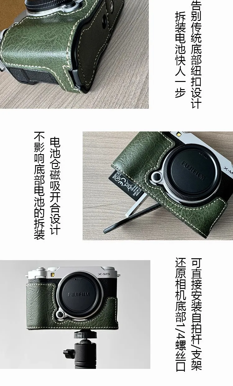 Link Étui De Protection En Cuir Synthétique Pour Imprimante Photo Protection supérieure : conçu spécifiquement pour l'appareil photo X-M5, ce demi-étui en cuir offre une protection exceptionnelle contre les rayures et les chocs, assurant que votre équipement reste en sécurité où que vous alliez. Pochette Accessoires Photo MUZIRI KINOKOO Housse En Cuir PU Pour Fujifilm X-M5 Appareil Photo, Demi étui De Protection Pour Fuji X-M5/Fuji XM5 Caméra, Housse Style Rétro Avec Ouverture En Bas Et Poignée Design - Café Protection X-M5 Rangement Accessoires Couleur : noir, marron, vert. Cuir de haute qualité : fabriqué à partir de cuir véritable de haute qualité, offrant un toucher doux et une durabilité durable. Que ce soit pour un usage personnel ou comme cadeau attentionné, c'est un choix élégant et raffiné pour toutes les occasions Comprend une dragonne élégante pour faciliter le transport de l'appareil photo; Compatibilité : Fujifilm X-M5; Matière : cuir, nylon; Dimensions : 117,03 x 47... Sangle de transport confortable : la sangle confortable permet de transporter facilement votre appareil photo partout où vous vous promenez, idéale pour les photographes qui ont besoin d'un accès rapide à leur équipement. [Style vintage élégant] Doté d'un design rétro chic fabriqué à partir de cuir de qualité supérieure, cet étui non seulement protège mais rehausse également l'apparence de votre appareil photo, ce qui en fait un accessoire élégant. Résistant à l'humidité : avec sa construction imperméable, cette coque protège contre les dommages causés par l'humidité, vous permettant de capturer de superbes images par temps variable sans soucis. Dimensions : 10 x 15 x 8 cm. Espace de rangement supplémentaire : livré avec un sac de rangement pratique qui peut contenir facilement les accessoires essentiels, de sorte que vous êtes toujours prêt pour des moments de photographie spontanés. *Sangle confortable : équipé d'une sangle confortable, cet étui pour appareil photo permet un transport facile, ce qui le rend idéal pour les longues sorties ou les voyages lorsque votre appareil photo est toujours à portée de main.