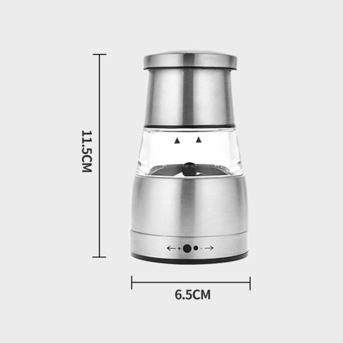 Remplissage : ouverture plus grande de 1,8 pouce, affichage clair de la qualité de remplissage, capacité de 10 oncesGrossièreté réglable : la grossièreté de la mouture peut être ajustée en tournant le en douceur. Moulin à Sel Électrique | 5 Niveaux de Broyage Réglables | Moulin à Poivre Électrique en Acier Inoxydable,Pour Maison, Restaurant, Appartement, Cuisine : : Home & KitchenAbout this item Performance culinaire optimisée : Équipé d'un système de broyage solide, ce moulin à poivre convient pour broyer efficacement le poivre et les grains de poivre, offrant des résultats... Broyage des épices : Ce moulin à poivre dispose d'un mécanisme de broyage avancé qui améliore l'efficacité culinaire en moulant rapidement et uniformément le poivre et les grains de poivre, le rendant adapté aux tâches culinaires quotidiennes dans votre cuisine Avec cinq options différentes de réglage de la taille de mouture, ce moulin convient au poivre, au sel, aux grains de poivre, au cumin et plus encore. Moulin Design Acier Inox Moulin De Cuisine | 5 Niveaux De Broyage Réglables,Moulin Moulin à épices Cuisine Moderne Capacité 10oz En raison des différentes mesures manuelles, veuillez prévoir une différence de taille de 1 à 2 cm. Ce moulin à sel rechargeable permet de moudre sans effort vos assaisonnements à grains solides préférés. Meulage : design ergonomique, facile à tenir, facile à broyer. Entretien facile : Ce moulin de cuisine dispose d'une conception robuste en acier inoxydable une bonne résistance à l'usure, préservant son état même après une utilisation prolongée. Sa structure sturdy fournit une stabilité optimale pendant le fonctionnement. Il est construit pour durer et pas facile à endommager. Caractéristiques:Taille du produit :Hauteur : environ 18,8 cm/7,4 poucesLargeur: environ 6,4 cm/2,52 poucesProeur : environ 6,4 cm/2,52 poucesMatériel:Matériau du corps principal : acier inoxydablePartie transparente : acryliqueFonction:Broyage électrique : rechargeable, facile à utiliser. Moulin à café électrique,Moulin à Sel Électrique à Gravité Amélioré... Pas besoin de remplacer fréquemment les piles. Décoration de Cuisine Améliorée: Grâce à son design épuré et son double focus sur l'esthétique et l'utilité, ce moulin à poivre électrique s'intègre idéalement sur n'importe quel plan de travail. Moulin à café électrique,Moulin à Sel Électrique existent,Gadgets de