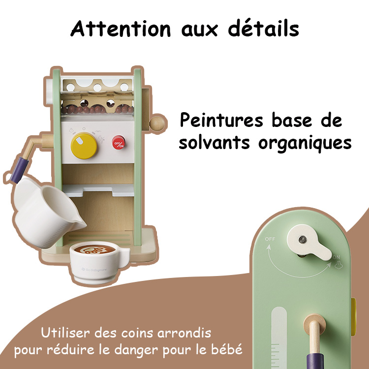 Avertissement De Sûreté N Ensemble Moulin à Café 230v pour Machine à Café DELONGHI – Le SAV Machine à café en bois pour enfants avec moulin est doté de plusieurs boutons. Thermomix Enfant Cuisine Enfant Machine à Café Jouet Bois 22 Pièces - Avec Moulin Et Sons - Cuisine Jeu Enfants 3 Ans Et Plus Jeu Imitation Barista Jouet En Bois Laissez libre cours à leur imagination. [Ensemble de cafetière jouet pour la cuisine] La machine a cafe enfant présente un design détaillé et réaliste, simulant le processus de mouture des grains de café, permettant aux enfants d'observer directement la préparation du café. Offrez à votre enfant l'expérience ultime du café de jeu avec notre magnifique machine à café en bois, conçue pour les jeunes esprits créatifs dès 3 ans. Fabriquée avec amour à partir de bois durable, cette machine à café est non seulement robuste mais aussi éco-responsable, garantissant des heures de jeu sûr et responsable Le machine a cafe enfant est un cadeau idéal pour les anniversaires, Thanksgiving et Noël. [Devenez facilement un barista professionnel] Avec cette machine a cafe enfant, créez votre propre café ! Ils peuvent 'préparer' espresso, flat white ou latte - de quoi développer leur imagination pendant des heures ! Conçue pour les enfants dès 3 ans, chaque pièce... [Matériaux sûrs et écologiques] La machine a cafe enfantest fabriquée en bois de haute qualité et avec une peinture écologique, ce qui la rend sûre et inodore pour les enfants. Les Machine à café en bois pour enfants avec moulin boutons de la machine reproduisent fidèlement le fonctionnement d'une cafetière, ce qui la rend idéale pour les jeux de rôle et renforce l'interactivité et le plaisir du jeu. Les enfants peuvent jouer le rôle d'un barista et servir des lattes et des cappuccinos à leur famille et à leurs amis. Description du produit 1., Le machine a cafe enfant est un jouet éducatif conçu pour les enfants de 3 ans et plus, favorisant le développement cognitif et pratique, transformant chaque moment de jeu en une aventure amusante autour du café., 2., Ensemble de machine à café en Bois comprend divers boutons et interrupteurs, permettant aux enfants de simuler la préparation d'une tasse de café, de la mise en marche de la machine à la mouture des grains, en passant par le réglage de la température et la sélection de l'arôme, comme un vrai barista., 3., Avec Cuisine de Jeu en Bois, ils peuvent inviter leurs amis à prendre un café ensemble et à partager un moment convivial. [Cadeau idéal] Le machine à café pour enfants propose une grande variété d'accessoires, parfaits pour une variété de scénarios.