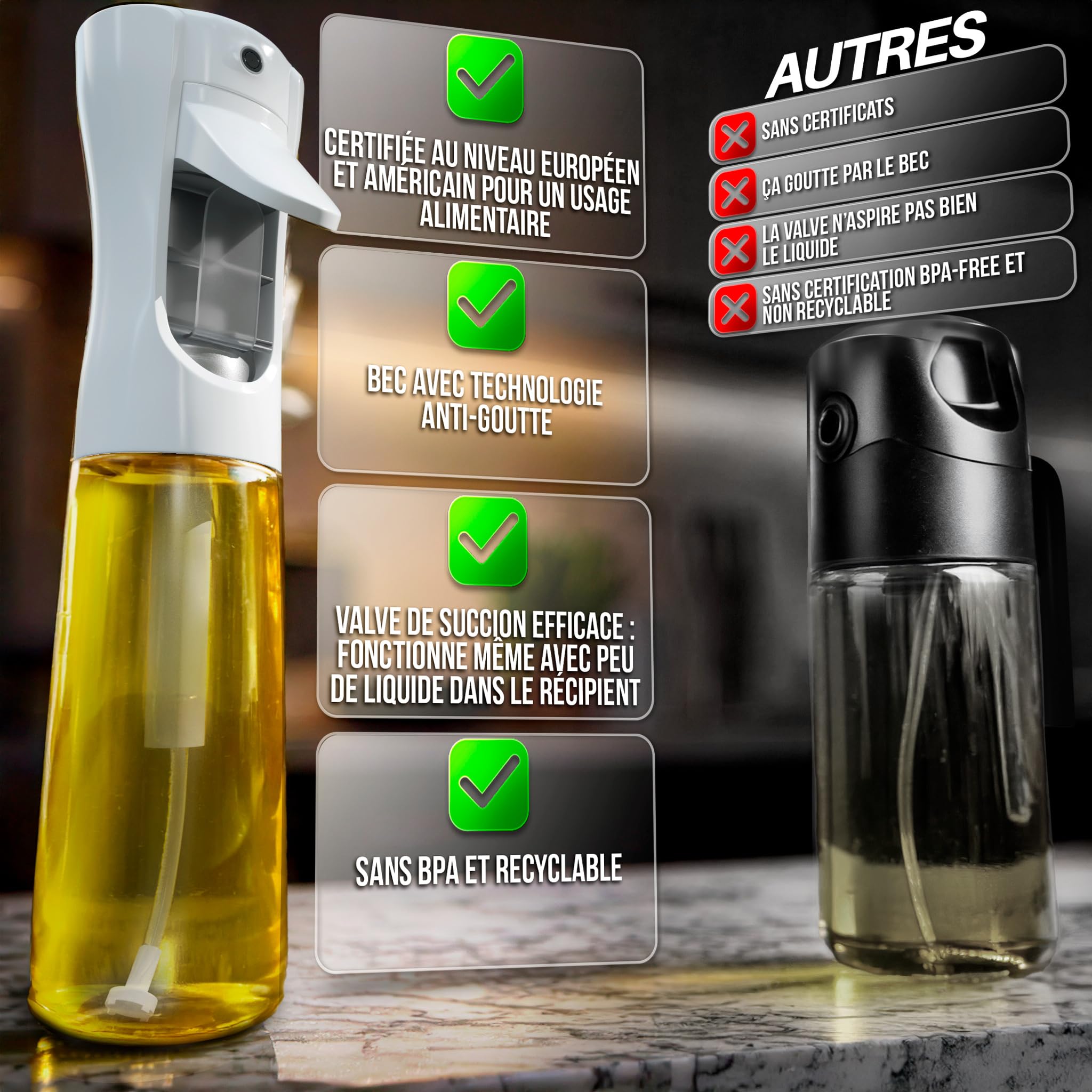 Largement utilisé dans la préparation de salades, la cuisine, la pâtisserie, le barbecue, le pique-nique, etc. Spray Huile Cuisine électrique Spray Huile Cuisine, Flacon Pulvérisateur électrique,Vaporisateur Huile Pulvérisateur Huile Salade Régime sain: L'injecteur de carburant à Spray de Cuisson Bouteille produit un brouillard d'huile uniforme et pur. Découvrez notre huile en spray : pratique, économique et parfaite pour une cuisson saine et sans excès ! · زيت الزيتون السرغينية.. · معصرة رجدال... Carry Portable: Cette bouteille en verre de Vaporisateur Bouteille Huile est de 240 ml et très pratique avec une petite taille qui peut être manipulée d'une seule main. Flacon Pulvérisateur électrique est aussi une taille parfaite à emporter pour le pique-nique et le barbecue. Ustensile de cuisine,Vaporisateur d'huile d'olive,vinaigre,sauce de CONSEILS 1. Si la brosse de nettoyage est déformée, utilisez de l'eau bouillante à 100... Améliorer le goût, plus sain. Si vous avez besoin d'un outil de cuisine pour vous aider à contrôler l'huile, pour rester en forme, essayez un Huile en Spray Bouteille, vaporisez de l'huile au lieu de verser, moins de calories. Vous pouvez recharger et réutiliser avec toutes vos huiles préférées. Pulverisateur Huile Spray Huile Cuisine, Flacon Pulvérisateur Utilisation très efficace, sans gaspillage. 【Facile à Nettoyer】 Il suffit de le vider, le nettoie à l'eau chaude, avec du produit vaisselle, dans la partie flacon, avec un pinceau, pour bien atteindre les parois et le fond