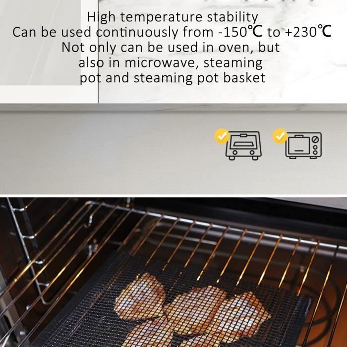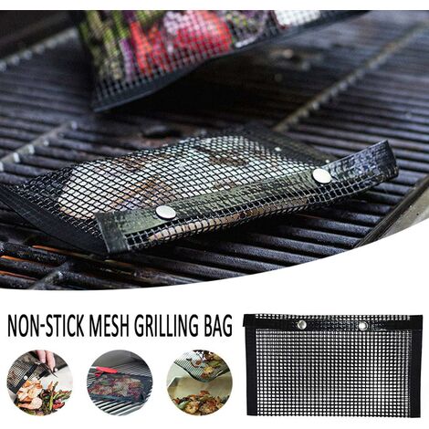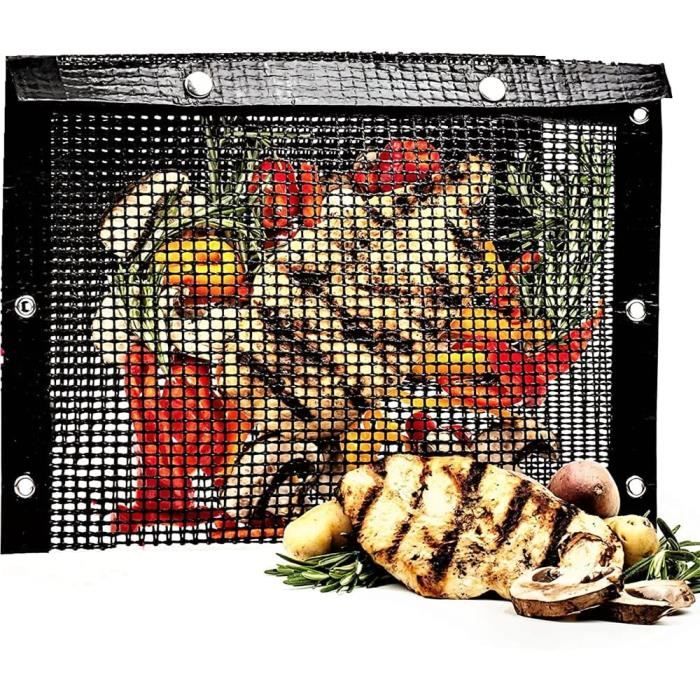 Tapis De Four Barbecue,Sacs De Cuisson Pour Barbecue En Maille Réutilisables Sacs Grillade Réutilisables PTFE Sac en filet de grillades Sac en Filet pour Barbecue, Sac de Cuisson 2pcs Sac en Filet de Grillades Sac de Barbecue Antiadhésif Résistant aux Hautes Températures... La fumée coule à travers la conception en maille, ajoutant de la saveur à votre viande, vos légumes, votre poisson, vos crevettes, votre bacon, vos ailes et plus encore. Les fermetures à bouton-pression permettent à vos aliments de rester en toute sécurité à l'intérieur du sac. Spécification: État : 100 % tout neuf Matériau : PTFE Taille: 22*27 cm/8., 66*10., 63in La couleur noire Température de chauffage maximale : 600 degrés Fahrenheit Description du produit Sac de Cuisson Barbecue Antiadhésif, réutilisable, lavable et lavable au lave-vaisselle ! Les sacs pour barbecue sont parfaits pour griller le poisson et le poulet. 🍡 APPLICATION POLYVALENTE: Sacs grillés en filet idéaux pour le pain grille-pain, le hot-dog, le hamburger, les frites, le steak, le poisson, les crevettes, les crevettes, les légumes, les tomates, les pizzas et plus de nourriture. 🍡 GARANTIE: Si vous avez un problème avec les sacs de cuisson pour barbecue que vous avez achetés chez nous, n'hésitez pas à nous contacter et notre équipe de support aux ventes se tient à votre disposition pour vous aider! FACILE À UTILISER : Il suffit de mettre les aliments dans le sac en filet pour barbecue, de fermer le couvercle, de les jeter sur le gril et ils sont prêts à être grillés