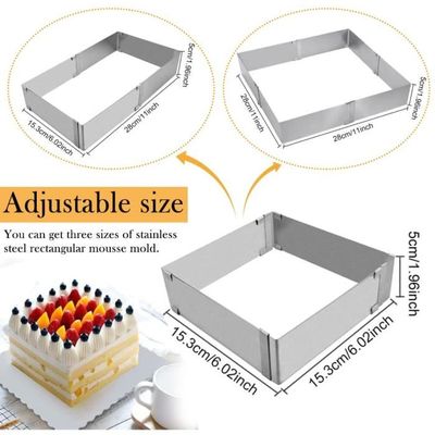 Plaque de cuisson rectangulaire quttin 28 x 15 cm 0,5 mm (12 pièces Tebery Lot de 2 Cadre pâtisserie, oule à Gâteau Rectangulaire en Acier... Moule à Gâteau Ajustable 15-28cm Cadre Gâteau Variable Cadre De Cuisson Rectangulaire Réglable 4smile - Acier Inoxydable, Taille Variable 29-52cm Cadre Acier Inox Moule Gateau Rectangulaire Qualité supérieure : le cercle à gâteau rectangulaire réglable est en acier inoxydable de qualité supérieure, la surface est polie, lisse et antiadhésive, résistante à la rouille et durable, lisse et réutilisable. Le cercle à gâteau carré peut être rangé de manière peu encombrante, idéal pour les espaces de cuisine limités. En acier inoxydable hyper résistant, il s'ajuste de 15.5 à 28cm grâce à des clips pratiques. Parfait pour réaliser des gâteaux, des tartes ou des desserts bien... Design réglable : le moule à gâteau carré peut être ajusté en taille. Facile à nettoyer : facile à nettoyer au lave-vaisselle ou à la main, il suffit d'utiliser un détergent doux. Ce moule à gâteau rectangulaire réglable pour les débutants Nombreuses utilisations : le cadre de cuisson rectangulaire réglable est parfait pour les petits ou grands gâteaux, les gâteaux génoises, les mousses, les crèmes à dessert, les gâteaux, les pizzas, les tartelettes à l'oignon, le chocolat et plus encore.