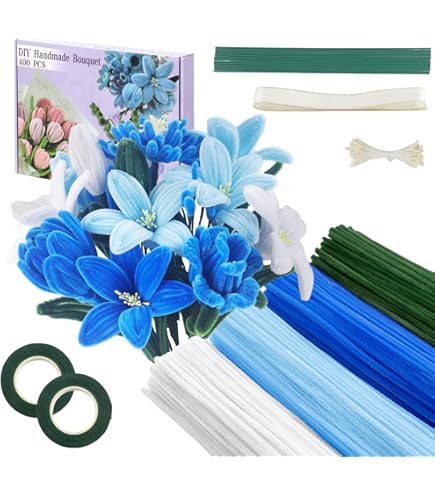 Lot de 300 cure-pipes pour bricoler des fleurs, cure-pipes, en 4 couleurs, pour tulipes, bricolage, avec fil floral, ruban, fleurs étamines, bâton de colle... Il favorise non seulement la créativité, mais aussi la motricité fine et crée un environnement sûr dans lequel les petits artistes peuvent développer librement leurs idées sans que les parents n'aient à s'inquiéter Des possibilités créatives infinies : transformez votre maison avec des décorations faites maison ou surprenez vos amis et votre famille avec des cadeaux personnalisés Cure-pipes Colorés DIY 210 Pièces Lot De 300 Cure-pipes Pour Bricoler Des Fleurs, Cure-pipes Accessoires Bricolage Fil Floral Colle Manipulation facile pour tous les niveaux de bricolage : les tiges chenille de 7 mm d'épaisseur sont incroyablement faciles à plier et offrent une grande plasticité, ce qui permet de réussir même les formes complexes sans trop d'effort Peuvent être pliés, enroulés et coupés et façonnés dans différentes formes selon vos envies. Ils sont le matériau idéal pour la fabrication de pétales, de feuilles et de tiges de fleurs Kit de cure-pipes DIY : ce kit complet contient tout ce dont vous avez besoin pour vos projets de bricolage : 210 tiges torsadées colorées, 20 tiges de fer vertes comme tiges stables, 2 rouleaux de fil de fleurs pour la fixation, 2 bâtons de colle chaude pour une tenue supplémentaire et 1 ruban cadeau pour emballer vos œuvres Sortez vos cure-pipes ! On craque pour ces marionnettes à doigts à bricoler en quelques minutes