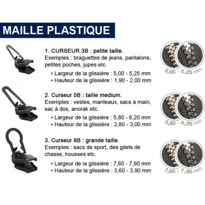 Kit Réparation Fermeture éclair ZlideOn 10711 Curseur 10C-1 Acier Inoxydable Noir 3 X 1,5 X 1 Cm Curseur Amovible Réutilisable Curseur de remplacement clipsable ZlideOn 5B pour fermeture avec dents en plastique ; Référence ZLIDEON-10533 ; Largeur · 5,80 - 6,20 mm ; Hauteur · 2,80 mm - 3,00... ZlideOn - Ersatz-Schieber 5A für Standard-Reißverschlüsse (Metall), 5 Il est réutilisable, vous pouvez le d'éclipser et le éclipser comme vous le souhaitez. ZlideOn Curseur de Replaceent Fereture à Glissière Fait en Alleagne... Si vous voulez faire de votre curseur ZlideOn votre curseur définitif, vous pouvez poser une pointe de glu à la jonction qui lie les 2 parties du curseur. Ouvrez un curseur ZlideOn., Clapsez le curseur., Voilà c'est prêt ! Avertissement De Sûreté Ne pas avaler(enfants) Contenu du coffret curseur Le curseurs ZlideOn 5B-2 est adapté pour les fermetures éclair en plastique type :vestes de sport, sacs, housses., ., ., la fiche produit en photo vous donnes les dimensions en terme de largueur et hauteur de la fermeture sur laquelle le curseur fonctionne.