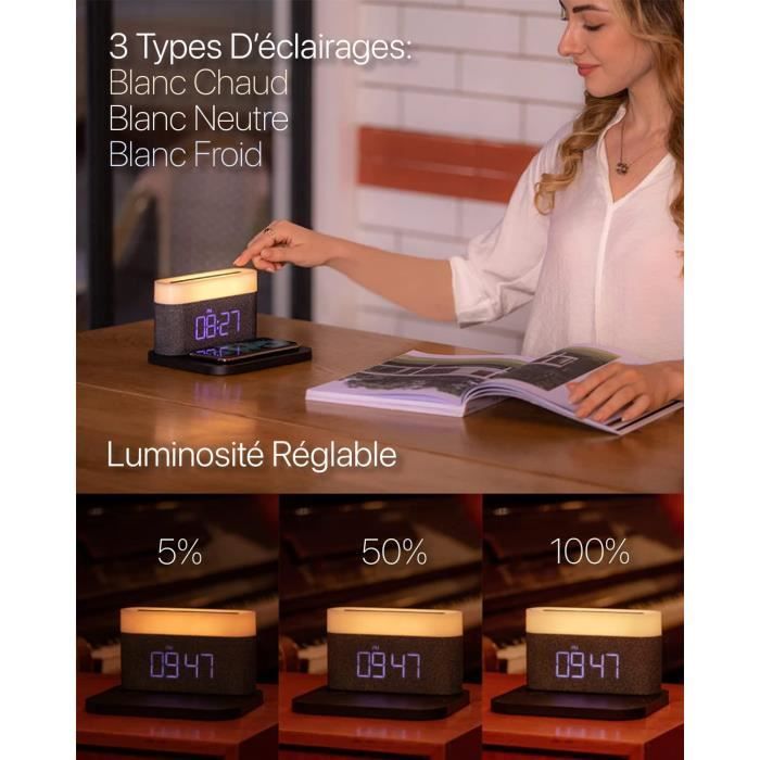 Réveil Simulateur d'Aube et Musique de Nature Réveil avec chargeur induction à 15W température Réveil Lumineux 2 Alarmes Cuteefun Réveil Lumineux, 15W Chargeur Sans FI, Reveil | FindTheDeal Reveil Intelligent Il est également doté d'un port de sortie USB pour charger d'autres appareils intelligents en même temps. Ce réveil en douceur au petit matin aide le corps à se réveiller progressivement. EN STOCK : Réveil Lumineux, 15W Chargeur sans FI, Reveil Simulateur D'Aube avec Haut-Parleur Bluetooth, Reveil Radio, Deux Alarmes, Lampe de Chevet Réglable... Et avec la fonction de ramassage, la lumière du réveil danse avec la musique, vous donnant une expérience visuelle cool. Le réveil est également doté d'une fonction snooze, qui vous permet de profiter d'un temps de sommeil confortable. 【Lumière D'ambiance】Cette lumière d'ambiance intelligente offre plus de 10 modes de couleur de lumière différents. 【2 Groupes de Réveils】Ce horloge numérique vous permet de régler 2 groupes d'alarmes, ce qui vous permet de planifier votre vie et de travailler plus efficacement.