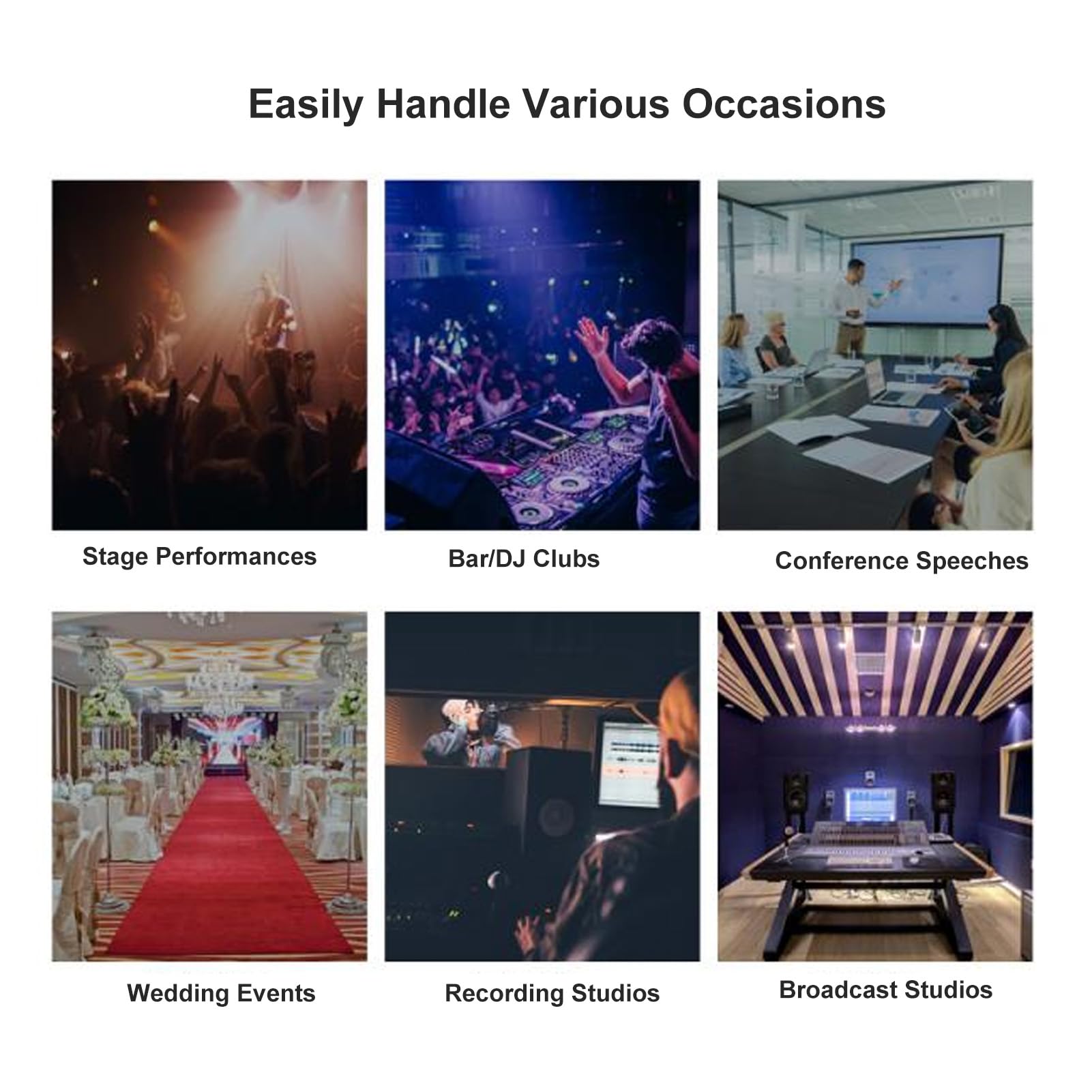 Micro Pour Table Mixage Dj Dickly Dynamique DJ, Col De Cygne, Micro XLR Pour Conférence Micro DJ Col De Cygne Microphone à col de cygne 38 Go, avec câble XLR vers 6,35 mm pour Micro col de cygne dynamique. 48,00 €. Micro col de cygne dynamique spécialement conçu pour une utilisation DJ, radio ou conférence. S'adapte sur tout type de... - 【Réglable】 : le à col de cygne adopte une conception de cygne en métal, et la fonction de rotation permet une utilisation multidirectionnelle et répond à vos différents besoins. - 【Matériel】: Le micro DJ à col de cygne est fabriqué dans un matériau métallique, solide et difficile à endommager, garantissant une utilisation à long terme. - Caractéristiques : DJ à col de cygne à cercle mobile a une large plage dynamique, un faible bruit et une bonne directivité. Description: - Large application : le dynamique convient aux mixeurs, aux performances sur scène, aux conférences, aux DJ de bar, aux microphones métalliques. Spécification: - Matériel: Métal Tableau de taille: - 43 cm x 3,5 cm/16,93 pouces x 1,38 pouces Le forfait Comprend: 1 DJ dynamique Note: Veuillez autoriser de légères erreurs dues à la mesure manuelle et aux différents moniteurs. 【Matériel】: Le micro DJ à col de cygne est fabriqué dans un matériau métallique, solide et difficile à endommager, garantissant une utilisation à long terme. 【Utilisation flexible】 : la conception du tuyau de en métal offre des fonctions multi-angles pour répondre aux besoins de différents angles d'utilisation. Spécifications : Type d'article : Microphone à col de cygne dynamique. Matériau : Alliage d'aluminium. Type : Dynamique Réponse en fréquence