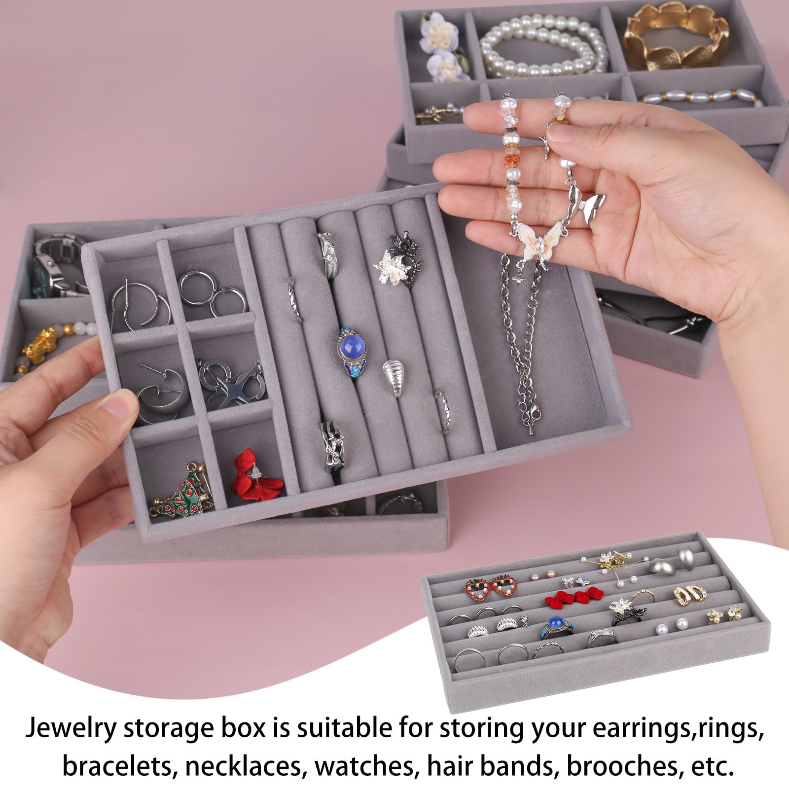 Plateau En Velours Cyrank Plateau à Bijoux Empilable En Velours, Plateau à Bijoux Plat En Bois Organisateur De Tiroir à Bijoux Pour Collier, Bracelet, Bague, Vitrine(Gris Rangement Organisé Colliers Bagues Boîte à bijoux en velours vert sauge Plateau De Rangement Pour Bijoux, 10 Pièces Empilables En Velours Pour Tiroir Plateaux De Rangement Et De Presentation~p117566564 Ce sera le cadeau idéal pour la saint-valentin, la fête des mères, noël, un anniversaire Plateau De Réception De Bijoux Plateau De Bijoux En Velours Empilable... Largement Utilisé : Collier boîte de réception rangez des bagues, des boucles d'oreilles, des colliers, des broches, des bracelets, des pendentifs, des montres, etc, qui peuvent être raisonnablement divisés et adaptés pour être placés sur des tables Matériau de Haute Qualité : Collier boîte de réception utilisation d'un matériau en flanelle de haute qualité, durable et résistant aux rayures, empêchant les bijoux de se nouer, résistant à l'humidité, lisse et doux au toucher Les bijoux ne sont pas faciles à nouer, faciles à empiler et prennent peu de place Spécifications : Matériel:Flanelle Couleur:Beige Taille:21*12., 3*2., 5cm/8., 26*4., 84*0., 98in Quantité:4 Pièces Descriptions des Produits 1., Collier boîte de réception contient 1 plaque vide, 1 plaque de 12 grilles, 1 plaque d'anneau de 9 grilles et 1 plaque de 18 grilles, la taille est de 21 * 12,3 * 2,5 cm / 8,26 * 4,84 * 0,98 pouces 2., Collier boîte de réception il est fait de flanelle de haute qualité, qui est lisse et doux au toucher, durable et anti-rayures, et peut protéger efficacement les bijoux., 3., Collier boîte de réception est le cadeau parfait pour les mères, les petites amies, les collègues, les amis, est le cadeau parfait pour la saint-valentin, la fête des mères, noël, anniversaire 4., Collier boîte de réception rangez les bagues, boucles d'oreilles, colliers, broches, bracelets, pendentifs, montres, etc.
