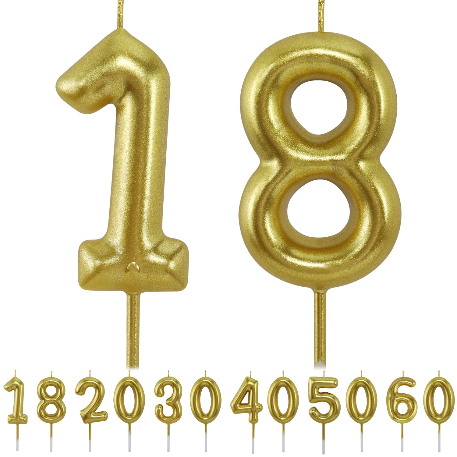 Bolosa - Bougies d'anniversaire Bolosa numéro 18, décoration de Polyvalentes : Ces magnifiques bougies à gâteau scintillent et brillent. 18 Ans Anniversaire Garcon Bougie 5Ème Anniversaire Bougie D'Anniversaire En Argent 5 Bougies Cadeau Anniversaire Adulte Elle est parfaite pour les fêtes d'anniversaire des adultes, des enfants et des animaux. Décoration de gâteau en forme de bougie en forme de chiffre : vous recevrez deux bougies en or champagne, imprimées avec les chiffres 1 et 8 0 Bougies D'Anniversaire, Bougie Chiffre 0, Bougie Dorée, Bougie D... Elles constituent également d'excellents cadeaux d'anniversaire ou de fête à thème. Cadeau idéal pour un 18e anniversaire : Ces décorations de gâteau personnalisées, déclinées dans une palette de couleurs champagne et or, sont ornées d'une couronne et d'un nœud. Polyvalent : Ce lot de décorations de gâteau numérotées en 3D, spécialement conçues pour les fêtes, apportera une touche d'élégance à votre gâteau. Elle s'harmonise parfaitement avec les décorations et les couleurs des fêtes d'anniversaire sur le thème du champagne et de l'or. Elles sont idéales pour décorer gâteaux et cupcakes, mais peuvent aussi servir de jouets pour enfants ou de décorations pour la maison. Décoration de gâteau en forme de bougie en forme de chiffre : vous recevrez deux bougies en or champagne, imprimées avec les chiffres 1 et 8., Ces bougies d'anniversaire en forme de chiffre 3D (corps de 6 cm) mesurent environ 13 cm au total, ce qui les rend adaptées à toutes les tailles de gâteaux d'anniversaire ou de fête.