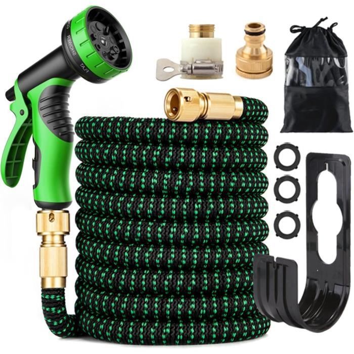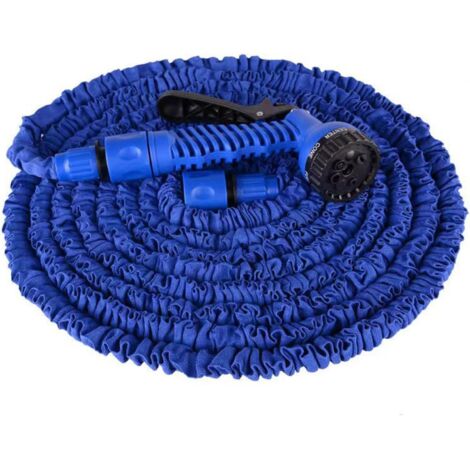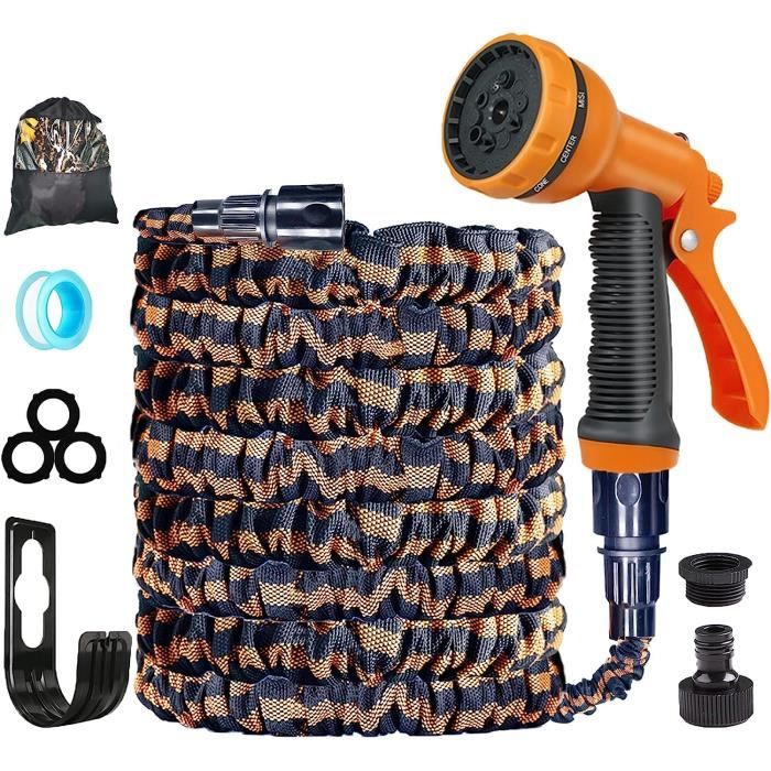 Tuyau d'arrosage flexible 20m – support, buse et pistolet multi spray inclus - Jardin D'une longueur de 30 mètres, il s'allonge jusqu'à 3 fois sous la pression de l'eau et revient à sa taille initiale facilement – plus de nœuds, plus de souci de... Tuyau PVC Longueur Ajustable Souple Tuyau D'Arrosage Extensible Extensible Tuyau D'Eau De Voiture Tuyau 30 M Extensible Bleu Matériaux de qualité supérieure : le tuyau d'arrosage extensible est fabriqué en PVC de haute qualité et dispose d'une résistance à l'éclatement et d'une prévention des fuites d'eau. Tuyau d'arrosage extensible : le tuyau d'arrosage flexible de 30,5 m peut être étendu jusqu'à trois fois sa longueur d'origine. Souple Tuyau D'Arrosage Extensible Extensible Tuyau D'Eau De Voiture... Si la pression de l'eau est insuffisante, elle peut atteindre 70 % de la longueur standard. Buse de pulvérisation à 7 fonctions : le tuyau d'arrosage extensible peut basculer entre sept buses fonctionnelles différentes, vous permettant de l'ajuster selon vos propres besoins. Un tel design rend le tuyau d'arrosage plus pratique pour ranger et organiser le tuyau d'arrosage. Facile à ranger : le tuyau d'arrosage retrouvera sa longueur d'origine sans être rempli d'eau.