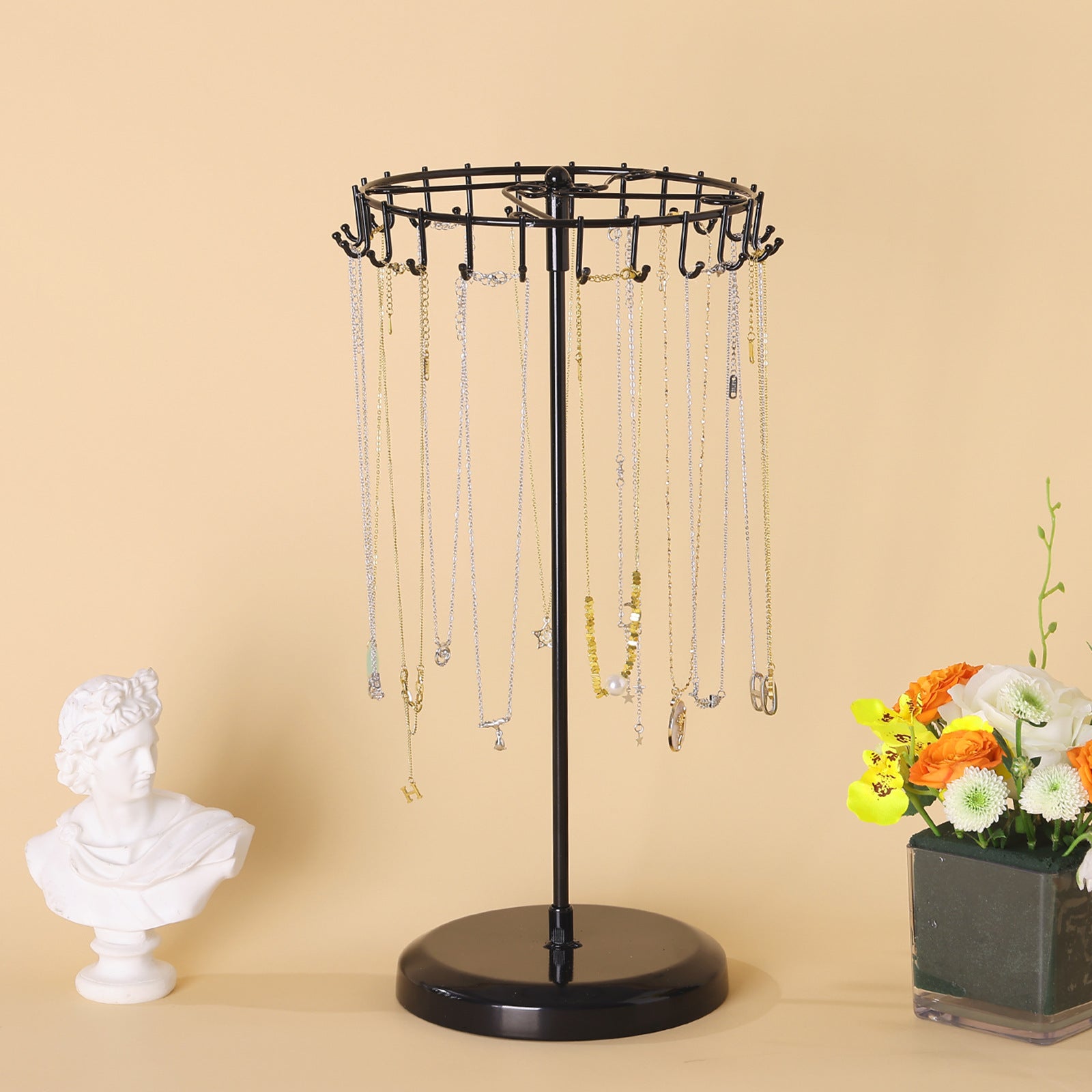 Il offre suffisamment d'espace pour une variété de bijoux et ne se plie pas. Présentoir à bijoux rotatif : il est possible de tourner l'arbre à bijoux dans le sens des aiguilles d'une montre et dans le sens inverse des aiguilles d'une montre. Le fond en fer épais augmente la stabilité du présentoir à bijoux et garantit que toutes les chaînes peuvent être suspendues en toute sécurité. Le support est fabriqué à partir de matériaux de haute qualité, solides et stables. Happy-Porte Bijoux 3 Tiers 72 Trous Rotatif Présentoir Bijoux En Métal Contenu : Intérieur : 1 x présentoir à bijoux blanc La boîte de rangement pour plateau est également adaptée pour ranger vos montres, clés et téléphones en toute sécurité. 4 -Présentoir à bijoux,présentoir rotatif,élégant,présentoir pour... Le design élégant est adapté pour les bureaux, les tables de chevet et les lavabos. Présentoir à bijoux blanc rotatif avec 23 crochets en métal - Arbre à bijoux avec plateau - 34 x 21 cm - Porte-bijoux pour le rangement et la présentation Ces présentoirs à bijoux sont parfaits pour ranger des colliers, des bijoux, des bracelets, des bagues, des boucles d'oreilles, des étiquettes de bricolage et bien plus encore. La disposition des bijoux se fait par des crochets rotatifs, ce qui permet une présentation et un rangement faciles. Rangement Bijoux Arbre Rotatif Métal Présentoir à Bijoux, Porte - Boucles D'Oreilles Avec Plateau Et Crochets Pour Porte Bijoux Sublimez votre collection de boucles d'oreille avec notre présentoir rotatif à 360°, disponible en vert ou en blanc. Grâce à son compartiment transparent, admirez l'ensemble de vos bijoux d'un simple coup d'œil. Son design est agrémenté de deux tiroirs charmants dont un orné d'un ourson doré Elle est visuellement élégante et noble et sert non seulement de porte-bijoux pratique, mais aussi d'élément décoratif attrayant dans la salle de bain ou la chambre à coucher.
