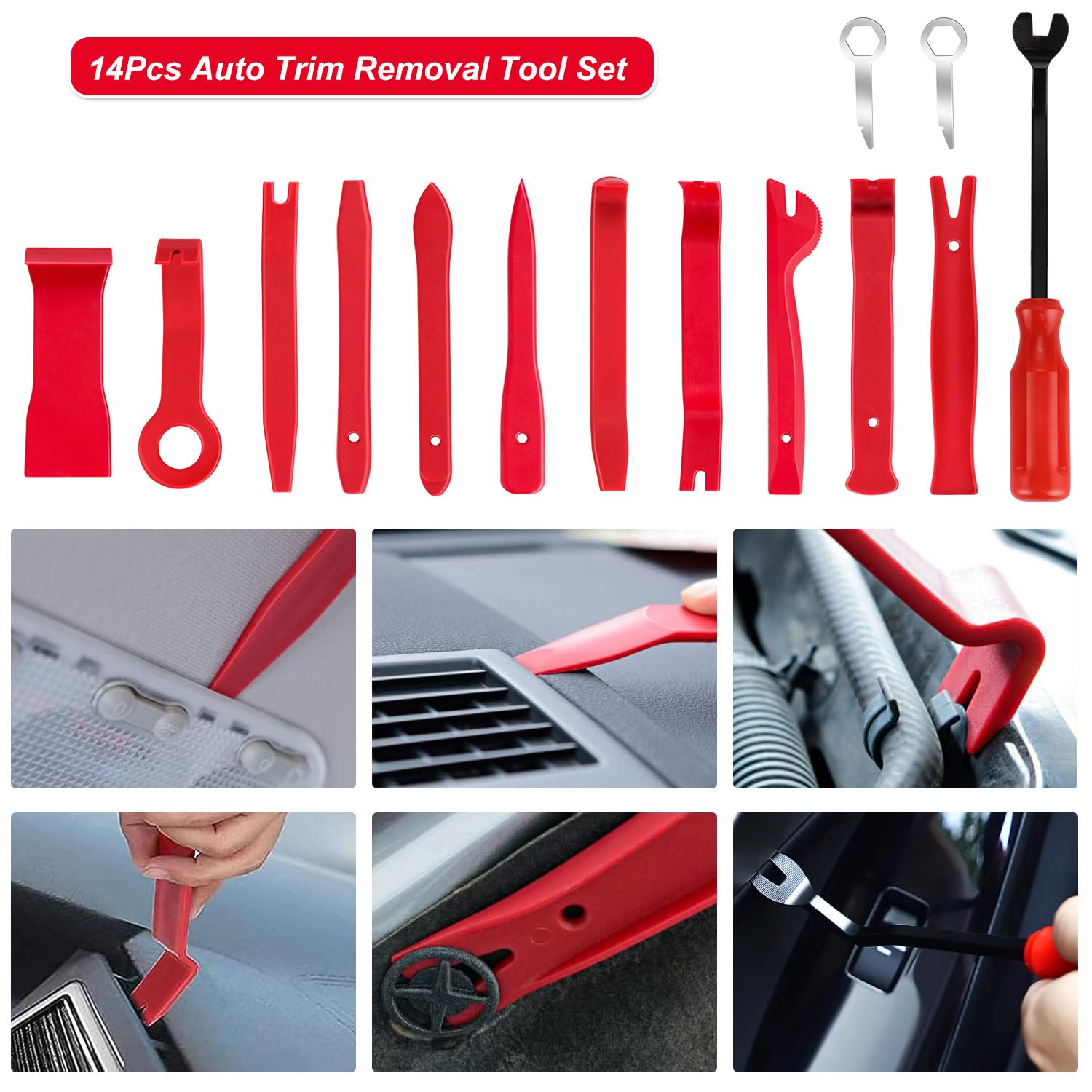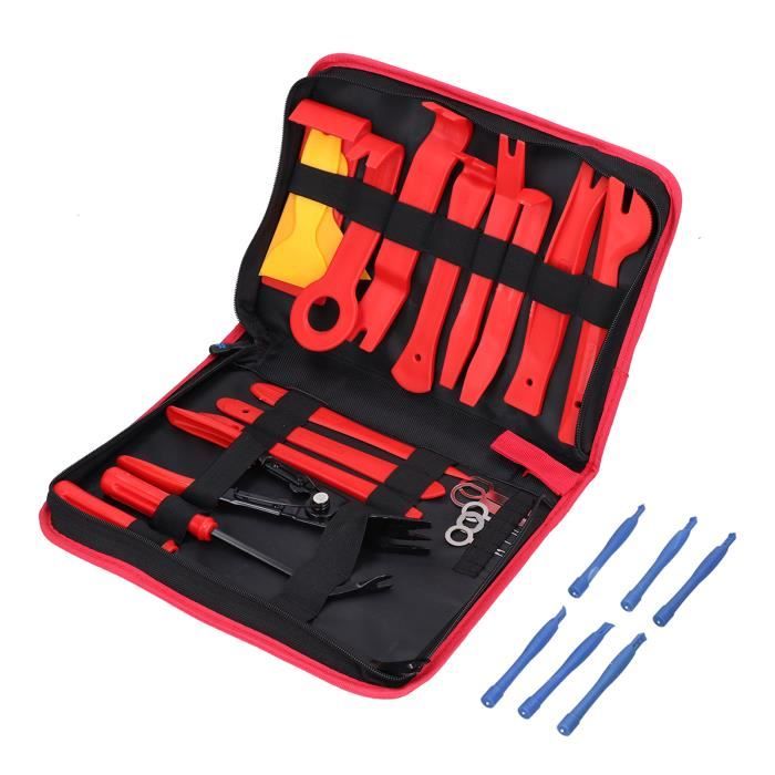 VINGVO ensemble d'outils de garniture de voiture Kit de réparation de levier de garniture d Levier Plastique Anti-rayures MILL Kit D'Outils De Retrait De Garniture Audio Radio Porte Décor De Tableau De Bord Retrait Du Kit Outils Dépose Garnitures Large utilisation : conçu de manière experte pour faciliter le démontage et l'assemblage de diverses pièces, cet ensemble d'outils de levier multifonctions garantit un accès transparent aux systèmes audio, aux panneaux de porte, aux intérieurs et aux clips Conception sans rayures : fabriqué à partir de plastique, ce kit d'outils de retrait automatique des garnitures évite les rayures et les dommages sur les panneaux de porte, les tableaux de bord et les moulures, garantissant que l'intérieur de votre voiture reste impeccable. Kits de dépose de garniture automatique de 12 pcs, trousses à outils... Kit d'outils complet : ce kit complet couvre tous les besoins courants en matière de retrait de garnitures dans un seul paquet, vous permettant d'économiser du temps et de l'argent en fournissant le bon outil pour chaque travail sans avoir besoin d'achats supplémentaires. Outils polyvalents polyvalents : comprend une variété d'outils de levier conçus pour retirer facilement les attaches, les clips de voiture, les rivets et les garnitures, ce qui le rend idéal pour les projets de réparation et de personnalisation automobiles.