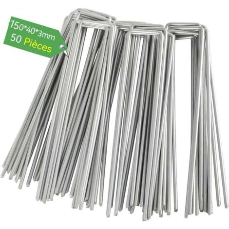 ToCi Ancrage au sol Noir Ancrage au sol pour la fixation de tissus anti-mauvaises herbes, de films et de tuyaux dans les sols durs. Que ce soit pour la fixation de toiles anti-mauvaises herbes, de films ou de tuyaux dans des sols durs ou pour d'autres activités de plein air comme par exemple pour tendre une tonnelle ou une tente, les piquets multifonctions ne doivent manquer dans aucun foyer. Surface robuste - Réutilisable pendant de nombreuses années. Matériau de qualité supérieure et construction solide. Tous les ancrages au sol sont galvanisés pour protéger contre la rouille et peuvent être réutilisés pendant de nombreuses années. Coins biseautés pour différents types de sols. Ancrage Au Sol Galvanisé TolleTour 50 Piquets D's 15x2.5cm Piquets D Piquets D'ancrage Galvanisés Piquets de Fixation, Lot de 100 Piquets d'ancrage au Sol en Acier Les possibilités d'utilisation des ancrages au sol sont presque illimitées. Avantages des ancrages au sol ToCi Ancrage sûr et stable pour le jardin ou l'extérieur. Les coins tranchants et biseautés sont parfaits pour les surfaces molles et dures. Lot de 8 ancrages au sol robustes de qualité supérieure – 45,7 c de... Avec les ancrages au sol, vous pouvez placer des toiles anti-mauvaises herbes, des film, des tuyaux de jardin et de nombreux autres outils dans le sol de manière pratique et stable, même sur des sols extrêmement durs et pierreux., Piquets multifonctionnels. Pour de nombreux matériaux : fixez de manière fiable les toiles anti-mauvaises herbes, les tissus de sol, les fils, les câbles, les tuyaux d'arrosage ou les filets avec ces piquets – Convient également comme ancrage de fixation pour les systèmes d'irrigation. L'épaisseur du matériau et la construction trapézoïdale des ancrages assurent un maintien supplémentaire dans différents types de sols. N° des ventes 1 offre à 11,93 € Filtres Livraison gratuite Prix croissant Pertinence Prix croissant Prix décroissant Prix total croissant Prix total décroissant Vendu par ToCi ToCi Lot de 50 piquets d'ancrage au sol 150 x 25 mm - Ancrage au sol galvanisé en fil d'acier de 3 mm - Piquets en U pour fixation de toile anti-mauvaises herbes, film, tuyaux et câbles - Ancrage de Produit... Ancrage optimal : grâce aux extrémités biseautées, les ancrages au sol peuvent être facilement encastrés dans des sols durs ou rocailleux – pour un maintien ferme sans glisser. Construction robuste – La construction trapézoïdale assure une tension supplémentaire dans le sol – ce qui le rend particulièrement durable et stable même en cas de vent ou de forte charge. Finitions de qualité supérieure.