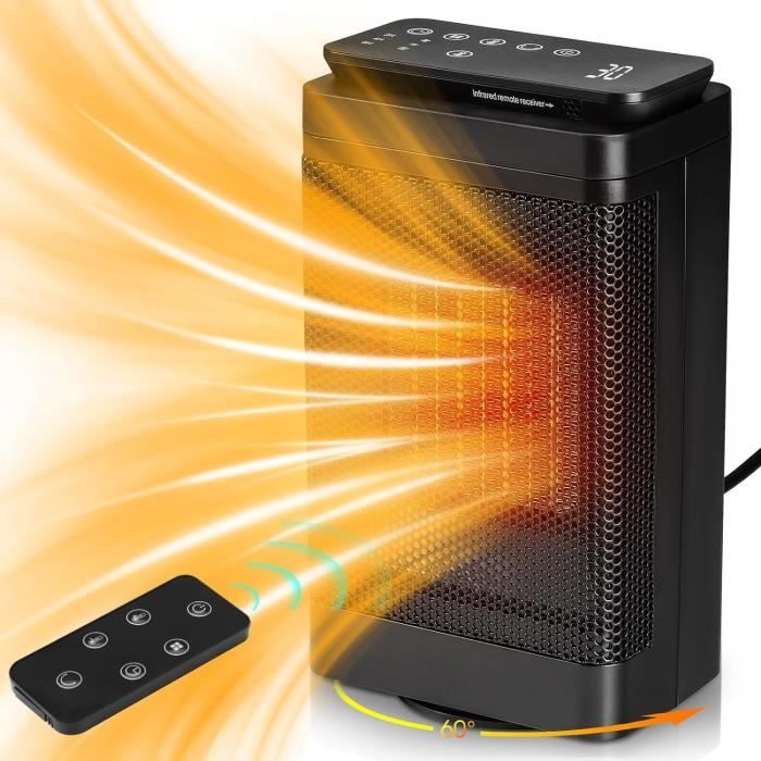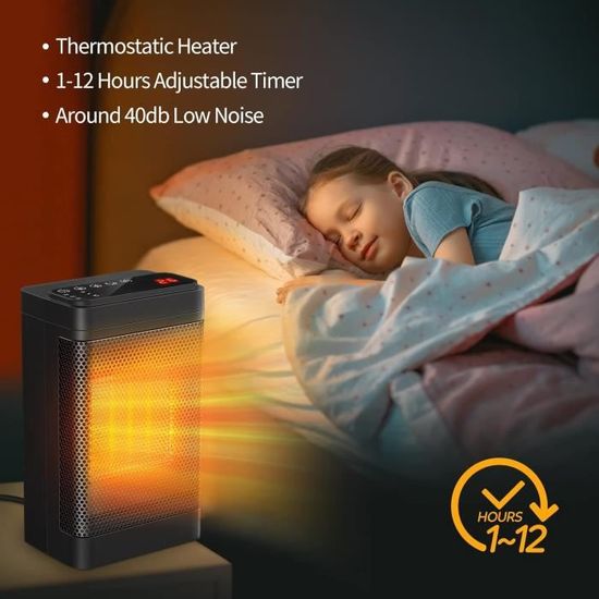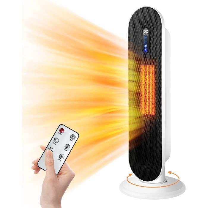 Un appareil polyvalent qui combine performance, confort d'utilisation et esthétique moderne. Minuterie 1-8H, Mode Éco, Chauffage Céramique Ptc Rapide De 1500 W En Toute Sécuri[Z586] · - Générique / Cheminée électrique. Puissance: 1500 W. 1 avis. Neuf... Un minuteur réglable de 1 à 12 heures garantit une expérience confortable tout en minimisant la consommation d'énergie Compact et portable, ce radiateur est idéal pour réchauffer rapidement les espaces de vie, chambres ou bureaux. Chauffage Télécommande Chauffage D'appoint Avec Télécommande, Radiateur Soufflant Chauffage Soufflant Salle De Bain Technologie de Chauffage en Céramique PTC : Fabriqué avec des matériaux en céramique PTC de haute qualité, ce radiateur électrique offre une zone de chauffage élargie et une puissance impressionnante de 1500 watts, permettant un réchauffement rapide en seulement 2 secondes Doté d'une fonction d'oscillation à 360° unique, il diffuse efficacement la chaleur dans toute la pièce. Paramètres Techniques : 220-240 V AC / 50 Hz | Puissance : Vent naturel 5W, faible chaleur 950W, haute chaleur 1500W | Matériaux : PC et ABS | Fonctionne 30 secondes après arrêt (pour refroidir l'élément chauffant) | Niveau sonore maximum 50 dBA | Dimensions : Longueur 14 cm, Largeur 14 cm, Hauteur 27., 2 cm | Longueur du cordon : 1., 5 m | Poids : 1., 4 kg Protection Multiple : Notre chauffage électrique est équipé d'une protection contre le basculement, de matériaux ignifuges et d'un système de réinitialisation automatique en cas de surchauffe, offrant plusieurs niveaux de sécurité pour une utilisation tranquille Confort en Hiver : Avec un design compact qui économise de l'espace, ce radiateur peut être facilement placé dans n'importe quelle pièce. Son design élégant en noir s'intègre parfaitement dans tout intérieur contemporain. Les différents modes de chauffage vous permettent d'adapter la puissance selon vos besoins, et la fonction ECO optimise la consommation d'énergie. Pro Breeze Radiateur Soufflant Colonne 2000W avec télécommande et écran... La télécommande incluse permet un réglage pratique et confortable de la température, du mode de fonctionnement et de la minuterie depuis votre fauteuil. Que ce soit en hiver ou à Noël, il constitue un cadeau idéal et attentionné pour vos amis et votre famille KRAFT Radiateur Électrique - Radiateur Soufflant Céramique - Chauffage - Chauffage