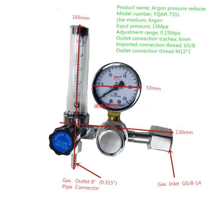 ) Le forfait comprend: 1 x régulateur de pression Remarque: Une faible augmentation de la pression sur le manomètre peut indiquer des dangers possibles. 【 de stabilité de la pression】 Équipé d'une technologie avancée, ce régulateur de pression peut réduire, afficher et stabiliser efficacement la pression. 【Construction sûre et fiable】 Ce régulateur de pression est construit avec un corps en alliage de haute qualité, qui garantit une régulation de tension stable et augmente la sécurité et la fiabilité pendant le fonctionnement. grand commutateur de poignée a une conception antidérapante et permettra d'économiser du travail. Régulateur de pression pour gaz de protection Argon/CO2 pour poste à souder MIG/MAG WIG Cela permet un contrôle précis et des performances optimales dans diverses applications Structure compacte, manomètre et manomètre haute pression sont faites de matériaux de haute qualité, structure compacte globale, parfaite, bonne étanchéité. Spécifications : Un régulateur qui convertit des gaz haute pression dans des gaz basse pression et garde la pression et le f-low des gaz de sortie... La conception conviviale assure non seulement une prise en main confortable, mais réduit également le travail et la fatigue, ce qui en fait un choix idéal pour les professionnels et les bricoleurs. Caractéristiques: Le régulateur de pression convertit le gaz haute pression en gaz basse pression et maintient la pression et le débit de gaz de sortie stables. La structure globale compacte et les excellentes propriétés d'étanchéité font de ce régulateur un choix pour une variété de besoins en matière de gestion des gaz. Soudage Régulateur D'argon Avec Débitmètre Régulateur De CO2 TIG MIG Régulateur Argon Pression de gaz stable] Le régulateur de pression convertit efficacement le gaz haute pression en gaz basse pression, garantissant une pression et un débit de gaz de sortie stables et constants 【Ergonomique et économique】 Équipé d'un grand interrupteur à poignée au design antidérapant, ce régulateur de pression est facile à utiliser et à contrôler.