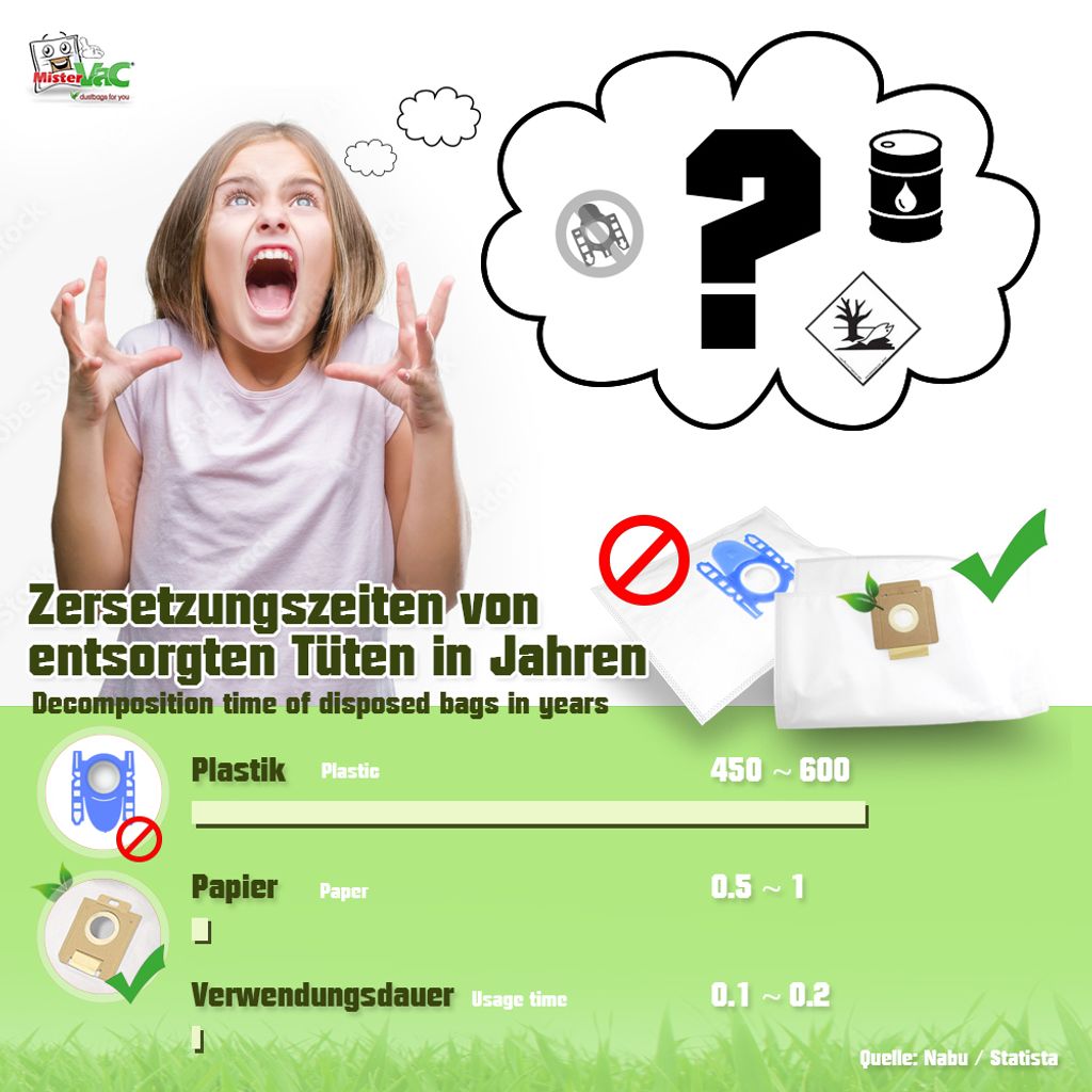 Notre propre production garantit des normes les plus élevées. L'équipe compétente va au-delà de la vente pour fournir des solutions individuelles aux problèmes. Pour une puissance d'aspiration totale, une filtration optimale de l'air évacué ainsi que moins d'effort du moteur. MisterVac est le leader des accessoires d'aspirateur. MisterVac Staubsaugerbeutel 5 Stück Les commentaires des clients inspirent des solutions innovantes. Adaptation optimale au fonctionnement et à la puissance d'aspiration de votre aspirateur. Performance puissante pour votre maison. Avec une puissance moteur de 700 watts et une puissance d'aspiration maximale de 180 watts, le KOENIC KVC 7324... Le monde entier et la nature vous remercieront. Lot de 20 sacs d'aspirateur SG multicouches en intissé. 20 sacs d'aspirateur SG - En non-tissé multicouche - Haute filtration avec plaque de maintien respectueuse de l'environnement Sacs Aspirateur MisterVac Compatible Avec Les Sacs D'aspirateur SG Sacs De Rechange 20 Pieces Fakir Action 220 240 Accessoire Aspirateur écologique est le premier choix pour les sacs à poussière, les filtres et les accessoires de qualité dans le monde entier. 01 20 x Sacs d´aspirateur en tissu non tissé multicouches avec haute filtration et plaque de retenue écologique 1x Filtre Hepa 1x 2 filtres fins à découper Merci La durée d'utilisation d'un sac d'aspirateur par rapport à 600 ans de pollution environnementale n'est pas proportionnelle.