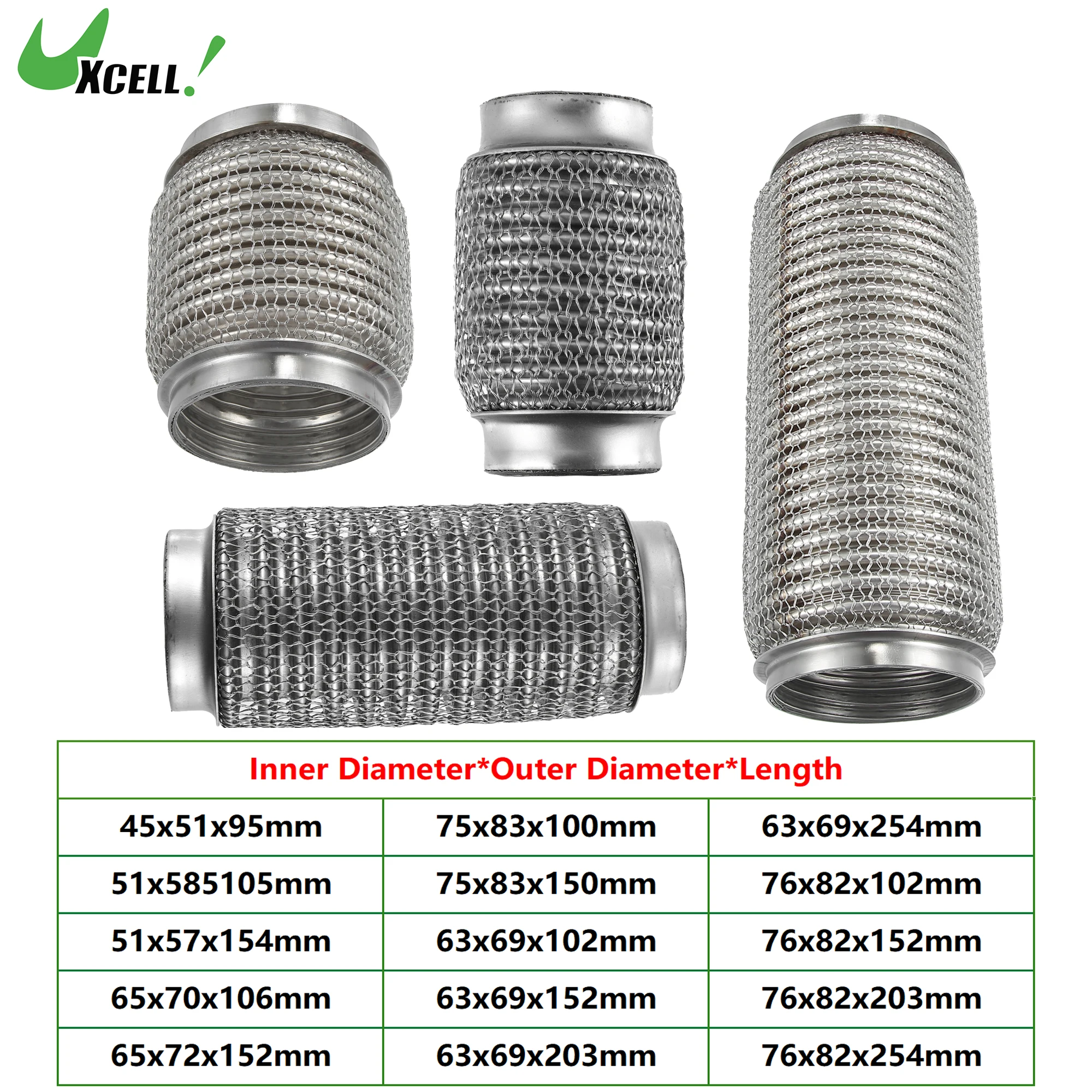 Le tuyau d'échappement est solide et résistant à la chaleur, ce qui le rend très durable et compatible avec le véhicule d'origine. Joint échappement Universel 60mm Queue Gorge Tuyau Flexible D'échappement De Voiture 50 Mm/60 Tuyau D'échappement Flexible Inox Fabriqué en acier inoxydable durable. Placez l'extrémité libre du nouveau tuyau d'échappement flexible dessus et ajustez la position du silencieux et du tuyau de descente jusqu'à ce qu'il soit droit mais sans tension Note:Veuillez prévoir une erreur de 1 à 2 mm en raison de la mesure manuelle. Une installation professionnelle est fortement recommandée! Gorge de queue Embout d'échappement à double tuyau de style fibre de carbone entièrement soudé... Resserrez les boulons qui fixent le silencieux et le tuyau de descente. Spécification:Matériau : acier inoxydableCouleur : ton argentDiamètre intérieur : 61 mm / 240Diamètre extérieur : 65 mm / 256Longueur non soudée : 150 mm / 591Longueur totale : 245 mm / 965Comment installer :1., Retirez l’ancien tuyau d’échappement flexible., 2., Placez l'extrémité libre du nouveau tuyau d'échappement flexible dessus et ajustez la position du silencieux et du tuyau de descente jusqu'à ce qu'il soit droit mais sans tension., 3., Faites passer le boulon dans le trou situé à l'extrémité du tuyau flexible d'échappement relié à la bride du silencieux. Augmentez la pression d'échappement et réduisez efficacement le bruit d'échappement. Tuyau flexible, échappement STARK SKFH-2540008 - Achetez maintenant Serrez-les pour fixer le tuyau à la bride., 4., Placez un nouveau collier de serrage à l'endroit où le tuyau flexible d'échappement rencontre le tuyau de descente et serrez-le. Ces tuyaux d'échappement flexibles sont destinés à être installés par soudage dans un système d'échappement pour isoler le bruit soulager les vibrations et réduire la contrainte sur les tuyaux un soufflet interne en acier inoxydable pour l'isolation des vibrations et une tresse interne en acier inoxydable pour réduire le bruit et les sifflements.