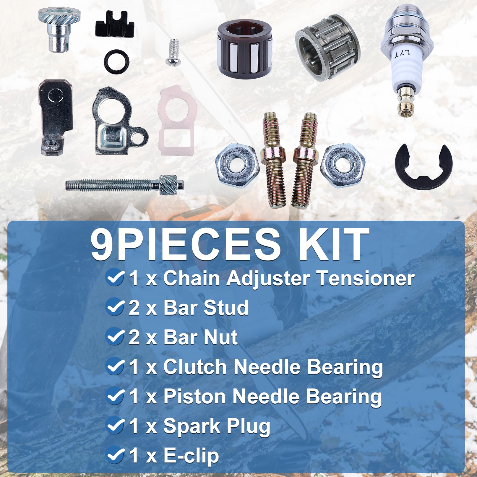 Veuillez comparer soigneusement le produit avec votre article d'origine via les images, assurez-vous que le modèle et la taille du produit correspondent à vos besoins. Carter de chaîne tronçonneuse Stihl 064, 066, MS650, MS660 - Bebel... Roulements Bougie Inclus Pour Assemblage D'écrous De Tendeur De Plaque De Barre De Chaîne STIHL écrous Goujon Barre Tronçonneuse Kit Boulons écrous Roulements Kit Tendeur De Chaîne Pour Le forfait comprend: 1 x tendeur de réglage de chaîne, 2 x goujon de barre, 2 x écrou de barre, 1 x roulement à aiguilles d'embrayage, 1 x roulement à aiguilles de piston, 1 x bougie d'allumage, 1 x E-clip Pour tronçonneuse Stihl 066 MS660 Remplacer OEM pour 1138 664 2400, 1127 007 1003 Contenu de l'emballage : 1 x tendeur de réglage de chaîne, 2 x goujon de barre, 2 x écrou de barre, 1 x roulement à aiguilles d'embrayage, 1 x roulement à aiguilles de piston, 1 x bougie d'allumage, 1 x E-clip Veuillez comparer soigneusement le produit avec votre article d'origine via les images, assurez-vous que le modèle et la taille du produit correspondent à vos besoins.