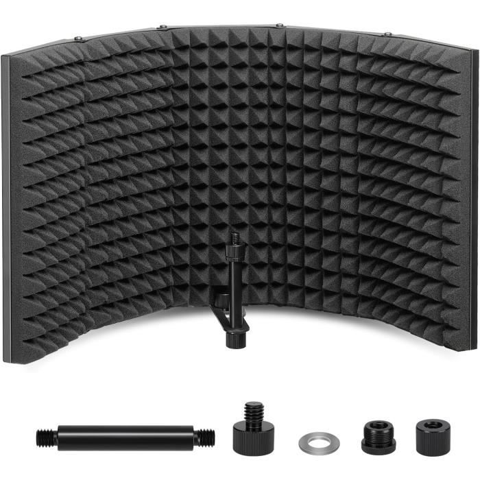 Élimination du bruit : le bouclier d'isolation du microphone adopte une structure multicouche système de prévention du bruit à l'intérieur, ce qui peut empêcher efficacement les interférences de réflexion du son sur le microphone et réduire le bruit environnemental excessif. Le design pliable rend le transport plus pratique. L'intérieur est fabriqué en éponge filtrante haute densité, qui a un très bon effet d'absorption acoustique. Dimensions approximatives : 28,4 x 68 cm Contenu du paquet : 1 bouclier d'isolation pour microphone. Neewer NW-5 Panneau Isolation Vocal Portable Pliable Réglable pour Micro en Aluminium Bouclier Et il peut facilement résoudre les problèmes de transmission sonore instable, de sécheresse, ainsi que les reflets et les reflets diffus lors de l'enregistrement dans diverses occasions. Description du produit : Marque : Aleawol. Noir-Bleu Panneaux de Mousse Acoustique,Panneaux Insonorisants,30x30x2... Vous pouvez l'utiliser avec un support de microphone avec un connecteur de 3/8 de diamètre. Description du produit aleawol – Bouclier d'isolation professionnel pour microphone, 5 panneaux, bouclier acoustique réglable en mousse pour microphone Le bouclier sonore du microphone robuste et durable est fabriqué en matériau ABS, robuste et anti-pression et anti-impact, avec une haute résistance réfléchissante au son ambiant. Bouclier Isolation Microphone Cocosity Bouclier D'isolation De Microphone Réflecteur D'absorption Protection Acoustique Micro Condensateur 12 PCS Panneaux de Mousse Acoustique, 30x30x2.5cm Panneau Absorbant... Facile à fixer : l'isolateur de microphone est livré avec un coin inférieur fixe, facile à installer, peut être utilisé directement sur le bureau.