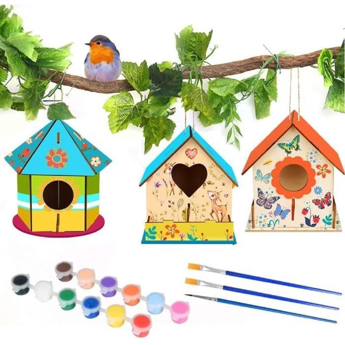 🦜【Kit de Nichoir pour Enfants】Vous recevrez 4 nichoirs à assembler, 4 cordes, 2 pinceaux, 1 palette et d'autres outils de peinture. Remarque : Ne convient pas aux enfants de moins de trois ans. Aucun clou ni marteau n'est requis. Veuillez noter que le nichoir est petit et ne convient pas à une utilisation extérieure permanente ni à un nichoir fonctionnel pour de vrais oiseaux. Nichoir Maison d'oiseau en bois - minifinker - 3 pièces - Blanc - Oiseau sauvage Sûr et respectueux de l'environnement, il permet aux enfants de jouer en toute confiance et de laisser libre cours à leur imagination et à leur créativité lors de la construction. Contactez-nous simplement – nous serons heureux de vous aider rapidement et de manière fiable ! 2Pcs Maison à Oiseaux en Bois Activité Manuelle Enfant, Maison D'oiseau... Il est parfait pour les anniversaires d'enfants, les projets scolaires, Halloween, Thanksgiving, Noël, les anniversaires, etc. 🌟Caractéristiques : Un kit de bricolage créatif pour nichoirs en bois de haute qualité, idéal pour développer l'imagination, la créativité et la motricité fine des enfants. ✨【Facile à Construire】Ce kit de nichoir est prédécoupé et rainuré. Kit Créatif Bois Décoration Enfant Kayqbonke 4 Pièces Maison D'oiseau Activite Manuelle, Maison D Canevas Enfant Ce kit de bricolage est parfait pour les enfants âgés de 5 ans et plus, offrant une activité de loisir créative et éducative. Il est également apprécié par les adultes qui recherchent un passe-temps relaxant et gratifiant 🎁【Cadeau Créatif pour Enfants】Ce kit de maison d'oiseau est un cadeau idéal pour les enfants, stimulant leur créativité, leur motricité fine et leur coordination œil-main.
