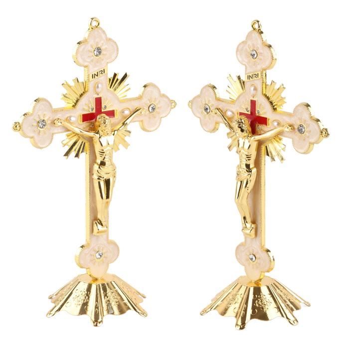 EJ.life croix murale crucifix Crucifix Debout Jésus Croix Décoration Prier Fournitures De Prière... Matériau en bois:fabriqué à partir de bois robuste et durable, cette décoration de croix crucifix est non seulement sûre et sécurisée, mais il est également moins susceptible de s'user, s'estomper ou casser. Baptême,, première communion, événements commémoratifs, Noël, Fête des mères, Fête des pères, ou mariages, cette croix en bois est un cadeau parfait pour toute occasion. Croix De Table Bois Crucifix En Bois D'olivier, Table Debout, Bureau, Croix Faite à La Main Croix Baptême Communion Informations sur la taille:Le produit fini mesure environ 180x61x291mm , la croix mesure environ 265x180x20mm , et le piédestal mesure environ 98x50x40mm . Crucifix debout Statue de Croix Statue de Crucifix Rétro élégant en Alliage Crucifix de Table... Conception de croix:cette décoration de table en bois en forme de croix présente une conception de croix unique et élégante, mettre en valeur votre foi de manière élégante. Christ En Croix, Crucifix En Bois Et écaille Rouge, Argent M
