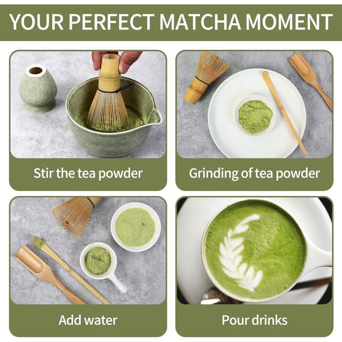 Cet ensemble pour matcha vert dégradé est polyvalent et convient non seulement à la préparation du thé matcha, mais aussi à d'autres boissons en poudre, telles que le cacao ou les milk-shakes protéinés. Matcha Kit 5 pièces Matcha set : 1 bol en céramique (520 ml), 1 fouet en bambou, 1 cuillère en bambou, 1 support pour fouet en céramique, 1 tamis pour poudre de matcha. Haute sécurité et haute qualité : Notre fouet à matcha artisanal, doté d'environ 74-76 dents fines, est fabriqué à partir de bambou de première qualité et recouvert d'une couche d'huile végétale pour une meilleure durabilité. Chaque bol à matcha et chaque fouet à matcha sont fabriqués à la main, ce qui en fait des pièces uniques. Generico Matcha Whisk Set De 5 Pièces, Matcha Bowl Set, Matcha Whisk Set De 5 Pices Matcha Bowl Set Matcha Whisk Kit Matcha Set Bowl Th Whisk Set Matcha Tea Set Matcha Tea Set Christmas Matcha Kit Rouge 485a76e9 752a 53b3 90ab F484d4ee8238 Le fouet à thé est composé d'environ 77 dents fines, fabriquées à partir de bambou de haute qualité à 100 % et recouvertes d'une couche d'huile végétale pour une meilleure durabilité. Leur fabrication artisanale et leurs lignes fluides en font de véritables œuvres d'art. Ensemble complet de 5 pièces à matcha : contient un fouet en bambou, une cuillère à mesurer, un bol en céramique, un porte-fouet et un tamis à poudre. Parfait... C'est le cadeau parfait pour vos proches à l'occasion d'un anniversaire, de la fête des mères, de la fête des enseignants, de la Saint-Valentin, de Noël ou d'autres fêtes. Matcha Kit 5 pièces Matcha set : Nos accessoires en céramique pour le matcha ont été soigneusement conçus, fabriqués à partir de céramique à 100 % et cuits à une température de 1 700 °C afin de garantir leur durabilité. Comprend tous les accessoires Fouet Bambou Matcha Matcha Set Avec Fouet Cuillere Tamis Support Fouet,5 Pièces Matériaux D'origine Alimentaire Kit Matcha Omplet Pour Maison Et Bureau,Matcha Accessoire Pour Les Amateurs De Matcha Cadeau Amateur Matcha Haute sécurité et haute qualité : Notre fouet à matcha artisanal, doté d'environ 76-78 dents fines, est fabriqué à partir de bambou de première qualité et recouvert d'une couche d'huile végétale pour une meilleure durabilité Le bol à matcha et le support pour fouet à matcha sont fabriqués à la main, solides et durables, pour une utilisation en toute confiance.