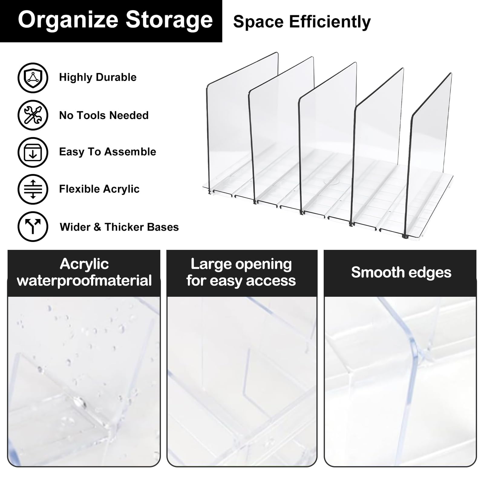 Il peut être accroché derrière la porte, adapté à la chambre à coucher, au salon, au couloir, à l'armoire, à la cuisine, etc. Séparateur étagère Acrylique Qivine Séparateur D'étagères Amovibles En Acrylique Transparent Avec 5 Séparateurs Pour Armoire De Chambre à Coucher, Cuisine, Armoires Organisateur Placard Sacs à Main étagère Amovible Les bords lisses n'égratignent pas les mains ou les objets, ce qui rend le produit plus beau. Cherchez-vous une bonne affaire séparateur étagère acrylique ? Explorez une large gamme des meilleurs séparateur étagère acrylique sur AliExpress pour trouver le parfait article pour vous ! En plus des marques de qualité, vous bénéficierez de remises lors de vos achats de séparateur étagère acrylique durant nos super promotions 【Cloison D'armoire Transparente】: organisateur de sac à main rangement placard vetement L'rangement armoire peu encombrant est fabriqué en ABS de haute qualité, un matériau épais et durable, transparent et simple, facile à nettoyer et respirant, ce qui rend vos articles résistants aux odeurs et à l'humidité et adaptés à votre stockage. 【Facile à Ajuster et à Installer】: rangement dressing organisateur placard vetement Notre produit est un compartiment, un article. Fangoo 8 Pièces Rangeent Sac à ain Organisateur Placard Rangeent... 1 Vêtements 2 Épices 3 Livres 4 Cosmétiques 5 Salle de Bains Plus Large et Plus Épaisse Ajustez la distance intérieure de l'organisateur de sacs à main en fonction de la taille et de la largeur de vos sacs à main pour garder vos sacs visibles et organisés dans votre garde-robe. BUYFUN-1 Ensemble de 5 Pièces de Feuille Acrylique Encastré Rendu La base large est suffisamment grande pour accueillir divers objets et économiser de l'espace dans l'armoire. 【Large Gamme D'applications】: Ce rangement de votre armoire proprement les sacs, les sacs à main, les petites couvertures, les draps, les serviettes, les vêtements, les sous-vêtements, les chaussettes, les jouets et plus encore.