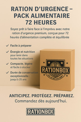 Pack Nourriture Lyophilisée 25 Ans Convar Foods EF Nourriture D'urgence - 7 Jours SEAU - TrendStore Ration De Combat Panique à 19h et frigo vide ? Pas de livraison ce soir ! Découvrez les 5 ingrédients indispensables à toujours avoir au congélateur pour improviser un dîner sain et gourmand en 10 minutes chrono Des conservateurs alimentaires dans les produits du quotidien peuvent ✅ Compact et léger – parfait pour les kits de survie, les randonnées et le camping Comida de emergencia paquete de 7 días / 7 days emergency food package... ✅ Fabriqué avec des ingrédients lyophilisés de haute qualité Ingrédients Muesli aux fruits et noix - 7 portions. Mélange d’épices et légumes pour riz sauté indonésien Chili sin carne Mélange d’épices et légumes pour macaroni Riz – 10 portions Macaroni – 10 portions Soupe instantanée au poulet – 10 portions Café instantané – 21 tasses Biscuits énergétiques – 18 biscuits Description du produit Pack Alimentaire d’Urgence 72 Heures – 5700 kcal | Conservation 25 Ans Préparez-vous à toute éventualité avec notre Pack Alimentaire d’Urgence 72 Heures, idéal pour les situations imprévues, les expéditions en plein air ou comme réserve stratégique à domicile.