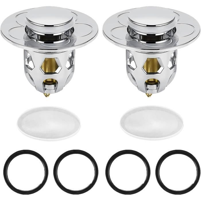 Bouchon Universel Lavabo Salle De Bain Bouchon Evier Bouchon D'Évier Universel 40mm En Laiton - Réglable En Hauteur Pour Cuisine Et Salle De Bain Accessoire Plomberie Laiton Bouchon D Evier Salle De Bain Bouchon Baignoire Universel Swetfela Lot De 2 Bondes De Lavabo - Universel 32-42 Mm - Bouchon Pop-Up Anti-Colmatage - Laiton Et Silicone Bonde Evier Cuisine LaBlanc - Bouchon Lavabo Universel, 2 Pièces Bouchon de Vidange, Bouchon de Lavabo Réglable... ✅ 【Filtration Maximale contre les Cheveux et les Objets】Ce bouchon de lavabo agit comme un filtre efficace grâce à son maillage serré, capturant cheveux, résidus et impuretés pour protéger vos canalisations. Idéal comme bouchon de lavabo salle de bain, il évite également la chute de petits objets (bagues, boucles d’oreilles) dans le drain, offrant une sécurité optimale au quotidien. Placez-le simplement sur la bonde lavabo salle de bain, l’évier de cuisine ou le bidet : son adaptabilité parfaite en fait un bouchon de lavabo pratique et polyvalent pour tous les foyers. Notre bouton d'évacuation 40mm en laiton robuste avec joint en silicone doux est le choix parfait pour votre lavabo, votre évier de cuisine ou votre bidet. ✅ 【Hauteur Réglable et Stabilité Absolue】La base de ce bouchon de lavabo salle de bain dispose d’un système à pas de vis pour ajuster la hauteur selon la profondeur de la bonde. Les rails latéraux garantissent une stabilité totale, évitant tout glissage, même dans les éviers les plus lisses – un atout majeur pour ce bouchon evier universel. ✅ 【Pack de 2 et Compatibilité Universelle Garantie】 Ce pack de 2 bouchons lavabo vous permet d’équiper plusieurs pièces (salle de bain, cuisine). Il est universel (s'adapte à la plupart des éviers de salle de bain, cuisine et bidets), et tu peux régler la hauteur grâce à sa conception en spirale. Le...