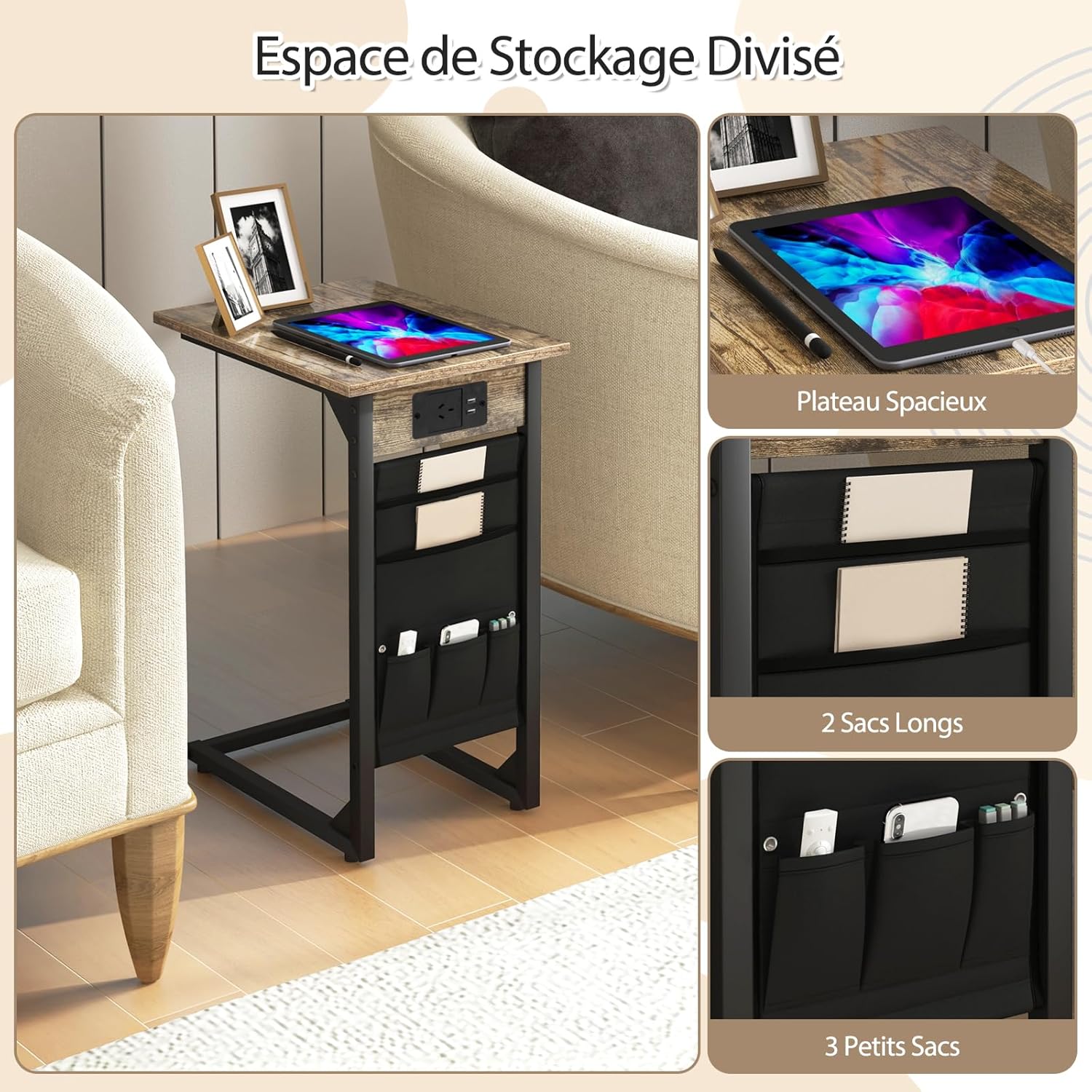 Parfaite pour y poser des lampes, des livres ou des accessoires décoratifs. COSTWAY Table de Chevet Lot de 2 avec Station de Recharge, 2 Ports USB... 【CONSTRUCTION ROBUSTE ET STABLE】Fabriquée à partir de panneaux résistants, cette table basse garantit une capacité de charge élevée et une stabilité durable. Avec 2 prises électriques, 1 port USB et 1 port Type-C, elle convient à une large gamme d'appareils électroniques. Meuble Salon Recharge Téléphone LIFEZEAL Table D’Appoint Bois, Table De Chevet Avec 3 Etagères Ouvertes Table Recharge Téléphone Vous pouvez ainsi recharger plusieurs appareils électroniques en même temps. Vous êtes toujours à la recherche d'un ensemble de tables d'appoint vintage et pratiques ? Avec ses trois compartiments ouverts, cette table d'appoint facilite le rangement des livres, albums photos et autres objets du quotidien. 【STATION DE RECHARGE INTÉGRÉE】Le compartiment central comprend une station de recharge pratique équipée de deux prises, d'un port USB et d'un port de type C. 【DESIGN ATTRAYANT ET INCOURBÉ】Avec sa silhouette élégante et incurvée et ses lignes géométriques épurées, cette table d'appoint à trois niveaux apporte une touche décorative et attirera à coup sûr tous les regards. 【UTILISATIONS MULTIPLES】L'ensemble de deux tables basses peut être utilisé ensemble ou séparément. 5 RAISONS DE CHOISIR NOTRE ENSEMBLE DE 2 TABLES D'APPOINT : 3 étagères ouvertes peuvent être utilisées pour ranger des objets du quotidien. SPÉCIFICATIONS : Couleur : noir / blanc Matériau : bois, MDF Dimensions totales : 50 x 30 x 60,5 cm (L x l x H) 2 prises électriques : 220-240 V/12 A 1 port USB et 1 port Type-C : 5 V, 2,4 A Longueur du cordon d'alimentation : 140 cm Poids net : 12,5 kg LIVRAISON : 2 x tables d'appoint 1 x mode d'emploi Station de recharge pratique]Notre table de chevet équipées d'une station de charge qui comprend 2 prises secteur de 220 V CA et 2 ports de charge USB. Aucune multiprise ou prise supplémentaire requise, vous pouvez recharger votre téléphone, tablette et autres appareils électroniques Que ce soit comme table d'appoint dans le salon ou comme table de chevet dans la chambre à coucher, sa taille compacte s'adapte parfaitement à différentes pièces. Idéal comme table de chevet, espace de rangement ou surface de présentation, il convient au couloir, au salon, à la chambre à coucher, au bureau et aux espaces de travail. LINSY HOME Table D'appoint Lot De 2 Avec Station De Recharge