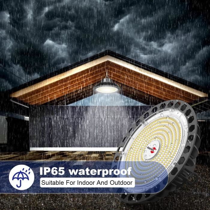 Durée de vie : 50 000 heures. Lot de 2 projecteurs LED extérieur - 150W - 95lm/W - IP65 - Blanc Froid... Économie d'énergie : l'éclairage LED de salle avec une efficacité élevée de 170 lm/W augmente la puissance lumineuse tout en économisant de l'énergie Sans entretien : Nos spots LED pour hall sont fixés une fois et prêts à l'emploi et ne nécessitent plus de soutien. Spot LED Haute Puissance Anten Spot LED D'intérieur 200 W 28000 Lm En Blanc Froid 5000 K , éclairage De Salle LED Avec Hauteur Efficacite 140 Lm W Ip65 90192649 Projecteur Atelier IP65 MATÉRIAU ROBUSTE : les exigences en matière de luminaires d'intérieur et industriels sont élevées. Structure de refroidissement efficace : En aluminium moulé sous pression de qualité supérieure, la dissipation thermique est 25 % meilleure que les produits comparables, boîtier en aluminium étanche et anti-saleté. Structure de refroidissement efficace : fabriqué en aluminium moulé sous pression de haute qualité, la performance thermique est 25 % meilleure que les produits comparables, boîtier en aluminium étanche et résistant aux taches Lampe industrielle LED : convient aux lampes d'étagère haute telles que les ateliers, les usines, les entrepôts, les stations de péage d'autoroute, les stations-service, les grands supermarchés, les halls d'exposition, les stades industriels d'éclairage minier GARANTIE : pour le projecteur de salle, nous offrons une garantie de 5 ans, si vous avez des questions, n'hésitez pas à nous contacter. Économie d'énergie : L'éclairage LED de salle avec une efficacité élevée de 150 lm/W permet de maximiser la luminosité et d'économiser de l'énergie. Indice de protection : IP65., Classe d'efficacité énergétique : A+., Efficacité : 150 lm/W. Les luminaires industriels Anten sont en avance sur les UFO LED similaires sur le marché en termes d'efficacité énergétique, à une époque où les coûts énergétiques augmentent, l'achat d'un projecteur led avec une efficacité énergétique supérieure est le bon choix pour vous Support de montage en U inclus : Grâce au support de montage, vous pouvez régler l'angle selon vos envies. Nous ferons de notre mieux pour vous offrir un excellent service ! ANTENLICHT Éclairage de hall LED 200W blanc froid 5000K