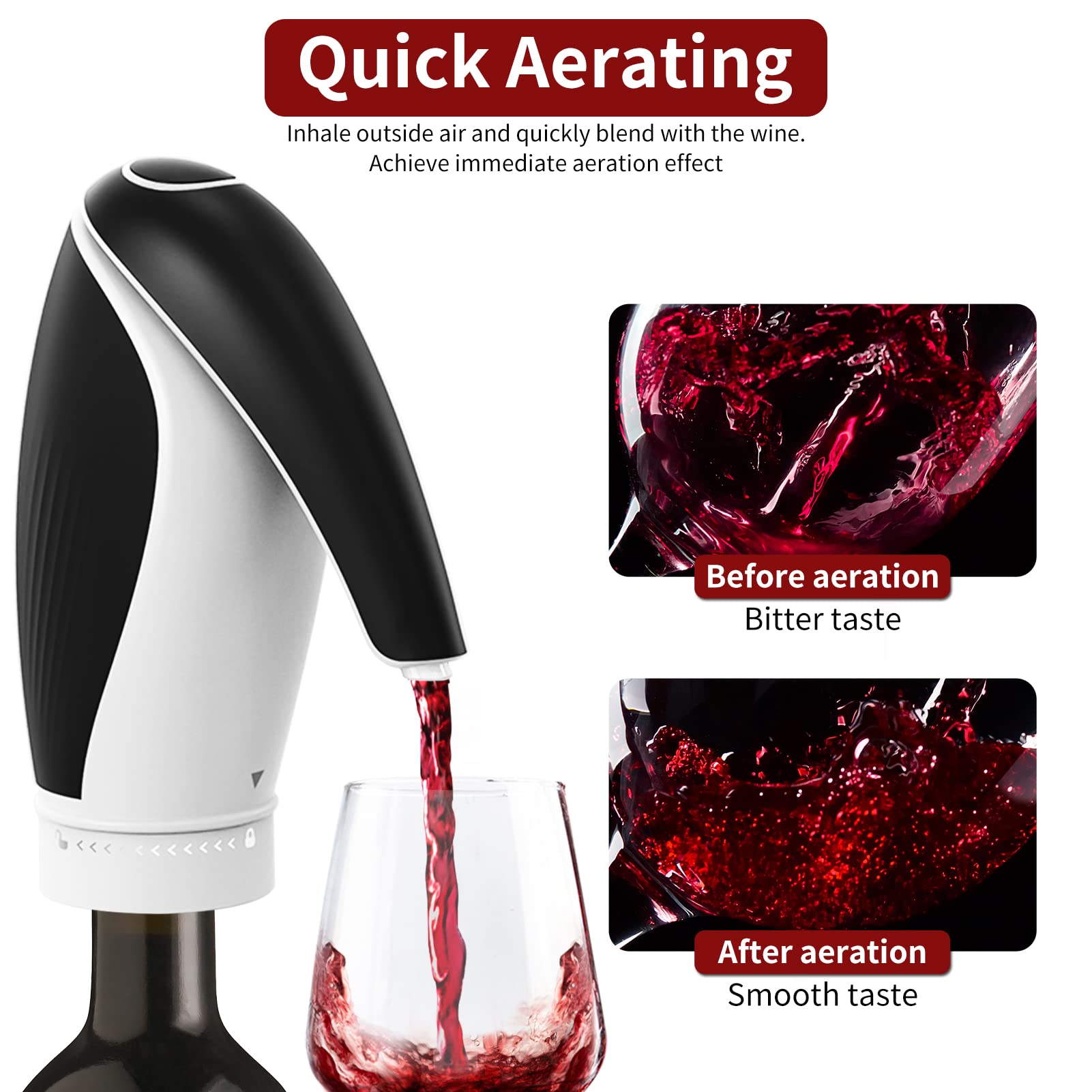 L'aérateur électrique aère automatiquement le vin tout en le distribuant de manière élégante et automatisée. Contenu d'emballage: 1 X décanter électrique de vin Un bouton facile à contrôler Deux modes disponibles: mode 75ml / mode continu Une charge complète pour 30 bouteilles de vin rouge standard, avec des sens high-tech. 1 X Tube en acier inoxydable, 1X Support de base 1 X câble USB TYPE-C Cadeau œnologie Original Ehskzjh Aérateur À Vin Électrique Premium, Décanteur Automatique Multi-Intelligent De Vin Decanteur Aérateur à Vin Electrique Élégant Aérateur De Vin Automatique Rapide Pour Une Expérience De Dégustation De Luxe Instructions de nettoyage : Connectez le tuyau de l'aérateur de vin, nettoyez l'aérateur de vin pendant l'aérateur de vin en pompant de l'eau propre plusieurs fois jusqu'à ce que l'eau devienne propre Type C Rechargeable Fonction de versement automatique rechargeable pour le vin. 【Construction en acier inoxydable 304 de qualité supérieure】 : Corps compact de 5,5 cm de diamètre x 12 cm de hauteur, avec une portée de 11,4 cm entre le socle et le bec. Découvrez comment l'aérateur de vin électrique intelligent sublime vos dégustations : efficacité, praticité et saveurs améliorées analysées dans notre test complet Le trou d'air du tube en silicone accélère la ventilation du vin enrichi en oxygène. Comprend une base, un tube amovible en acier inoxydable et un câble USB-C., Instructions incluses. Les ouvertures du bec rehaussent le caractère du vin au service, réduisant ainsi le temps de décantation. Décanteur à vin rouge électrique,aérateur rapide automatique USB,sortie de vin réglable... Le socle de rangement de qualité alimentaire fait office de présentoir élégant et de décoration de bar sophistiquée. 【Cadeau idéal pour les amateurs de vin】Parfait pour les anniversaires, les fêtes et les occasions spéciales ; un cadeau attentionné pour les amateurs de vin. Effet Bernoulli rapide à aérateur Le décanter électrique assure une ventilation plus rapide du vin avec de l'oxygène.