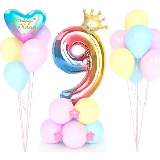 Décoration Fête Enfant Multicolore Ballon Anniversaire Décoration Anniversaire 9 Ans - Kit Ballons Arc-en-ciel Avec Chiffre Cadeau Fille 9 Ans Kit Décoration Arc En Ciel Ballon étoile arc-en ciel Happy Birthday | France Effect BANNIÈRE DE BALLON Joyeux Anniversaire Ballons D'anniversaire Arc-en... 【Decoration Anniversaire arc en ciel】- L’ensemble de decoration arc en ciel anniversaire comprend: 13pcs bannière de lettre de joyeux anniversaire, 5pcs ballon en aluminium, Ballons en latex de 40 pcs (vert menthe, bleu des Caraïbes, jaune foncé, rose clair, rouge macaron, bleu macaron, violet macaron, couleur crème, 5pcs par couleur). Très bien fait avec de belles couleurs et un ensemble de decoration arc en ciel anniversaire au design sophistiqué, Vous ne vous inquiétez pas de les déchirer ou d’éclater lorsqu’ils sont gonflés, Procurez-vous un paquet de nos ballons arc-en-ciel et commençons le voyage de rêve dans le ciel. 【Ballons arc-en-ciel pour toute occasion】- Notre ensemble abondant de décorations anniversaire fille peut être utilisé pour une révélation de genre, il est également idéal pour les décorations d’anniversaire et la baby shower adaptées à la célébration de mariage, à la mariée d’équipe, à la fête de poule, aux nuits de poule, mais aussi à la célébration d’anniversaire et à d’autres événements spéciaux que vous souhaitez décorer. Décorations de fête d'anniversaire fille pastel -Démarre la fête de la fantaisie avec les décorations de fête ensemble de ballons pastel. 】Ensemble de ballons de décoration de fête arc-en-ciel pastel, en raison des caractéristiques de l’hélium, un ballon rempli d’hélium ne peut durer que 1-2 heures, Il est recommandé d’utiliser une pompe à ballon pour gonfler. Les ballons en papier d’aluminium ne sont pas flexibles, veuillez gonfler lentement à 85%. Si vous avez des questions, n’hésitez pas à nous contacter. Saupoudrez votre belle table d’anniversaire arc-en-ciel de confettis multicolores et autres objets colorés. Pour votre salle, on continue dans la décoration haute en couleur avec les boules en papier et ballons arc-en-ciel et les guirlandes et suspensions multicolores