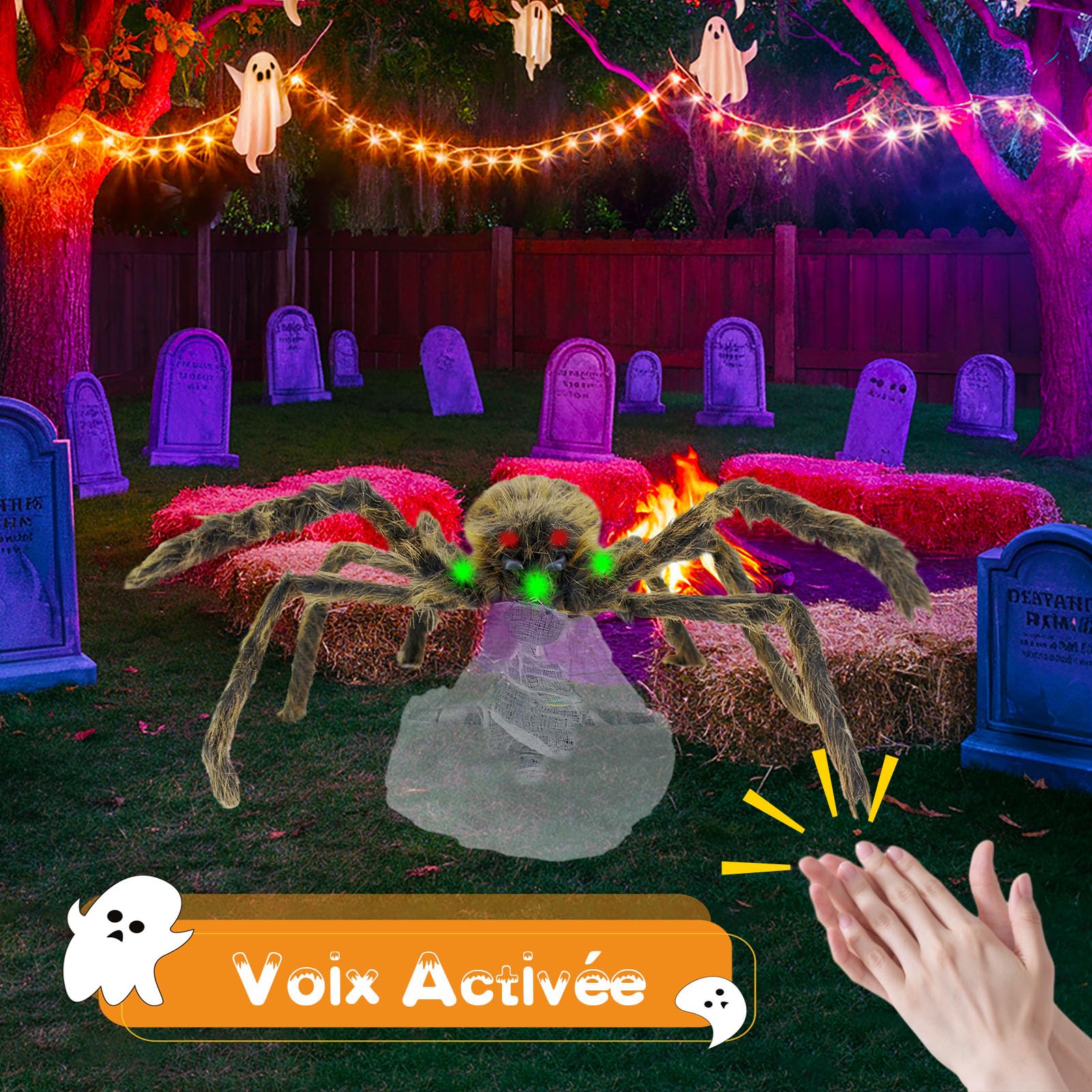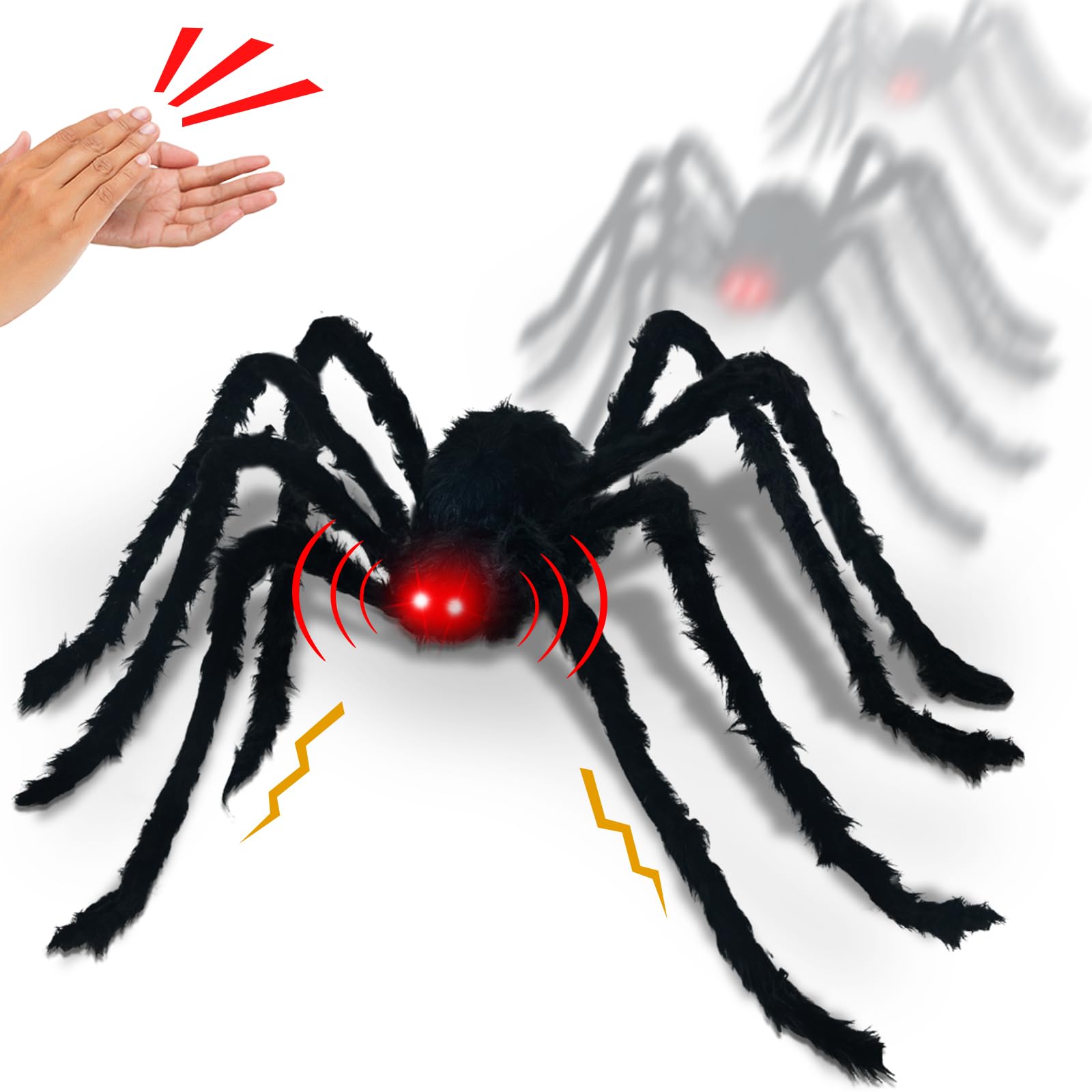 Lorsque quelqu'un passe à proximité, l'araignée décorative effrayante s'active : elle émet des sons, ses yeux LED s'allument et elle bondit vers l'avant à la vitesse de l'éclair ! Animation effrayante pour votre soirée d'Halloween Effets sonores et lumineux pour une ambiance terrifiante 100% PVC, robuste et durable pour de nombreux évènements Une décoration d'Halloween spectaculaire L'araignée géante sauteuse lumineuse, sonore et motorisée est l'accessoire idéal pour mettre une ambiance effrayante lors de votre prochaine soirée d'Halloween. Avec ses... 【Effets lumineux et sonores effrayants】Les yeux LED de l'araignée s'illuminent de manière inquiétante, accompagnés de bruits effrayants. 【Décoration d'Halloween】Cette araignée sauteuse est le moyen idéal pour faire sursauter tous vos invités à l'occasion d'Halloween. Décoration Halloween Animatronique Son Et Lumière Décoration D'Halloween : Araignée Sauteuse Animée 50 Cm - Déguiz-fêtes Poupee Halloween Effrayante 【Matériau durable et malléable】Fabriquée en peluche douce et en fil de fer solide, cette araignée d'Halloween est particulièrement robuste. 50cm Araignée Rebondissante pour HalloweenCette araignée va vous sauter dessus quand vous vous y attendrez le moins ! Fonctionne avec 3 piles AA (non fournies). Elle semble sommeiller, mais gare à celui qui s'approche trop près ! 【Montage facile et rangement peu encombrant】Aucun montage compliqué n'est nécessaire : il suffit de former et de placer les pattes comme vous le souhaitez. (Non incluses dans l'emballage) Equipped with a push-button switch and sound sensor for energy-saving operation. Balle sonore pour chiens Wobble Wag Giggle Glow - Brille dans le noir (4 pieds de support inclus dans l'emballage)2., Nécessite 3 piles AA. Après Halloween, les pattes se replient facilement pour un rangement peu encombrant. Araignées Mécaniques d’Halloween : Frissons et Mouvements