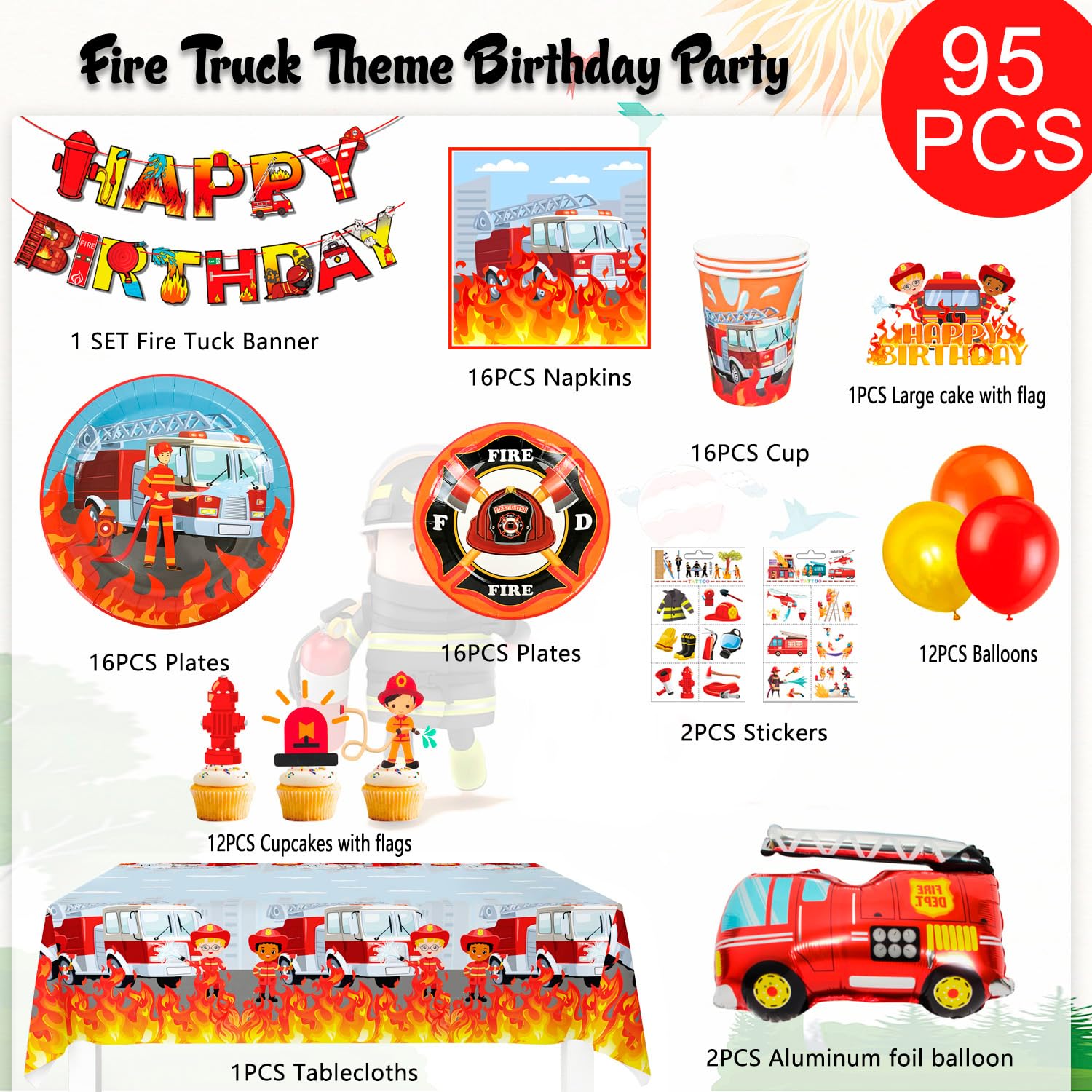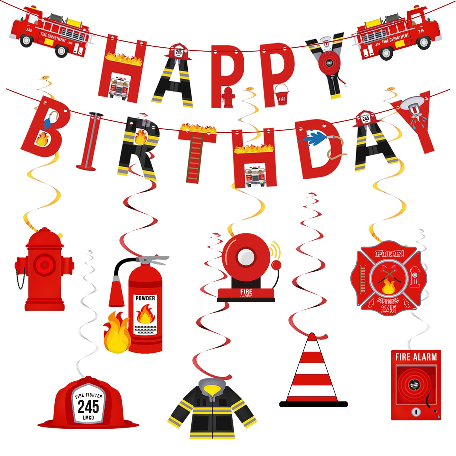 Fournitures de fête d'anniversaire sur le thème des camions Conception amusante de la caserne des pompiers: les imprimés vibrants présentent des camions de pompiers réalistes, des casques, des extincteurs et des flammes. Décorations Fête Pompier Décoration De Fête Anniversaire Camion De Pompiers, Bannière Ballons Antenne Dipôle Caoutchouc étanche FM AM 16km Matériaux premium et sûr: nos décorations de pompiers sont faites à partir de papier durable avec des encres résistantes à la fondu. Ballon alu Happy Birthday camion de pompier - 45 cm Set De Vaisselle Pour Dinosaures, Happy Birthday Party Vaisselle Packs... Coordonne parfaitement avec d'autres fournitures de fête de pompiers. Crée une atmosphère d'aventure de pompiers passionnante pour les fêtes d'anniversaire, les douches pour bébés ou les événements d'éducation à la sécurité incendie dans les écoles. Faites des cadeaux mémorables pour les futurs pompiers! Kit complet de fête: comprend 1 bannière Happy Birthday, 1 bannière de motif, 9 tourbillons suspendus et 9 centres de table en nid d'abeille - parfaits pour créer des célébrations sur le thème des pompiers immersives. Configuration rapide: nos bannières sont pré-assemblées et d'autres décorations sont faciles à assembler. En raison des différences entre les écrans, une légère différence de couleur peut apparaître.