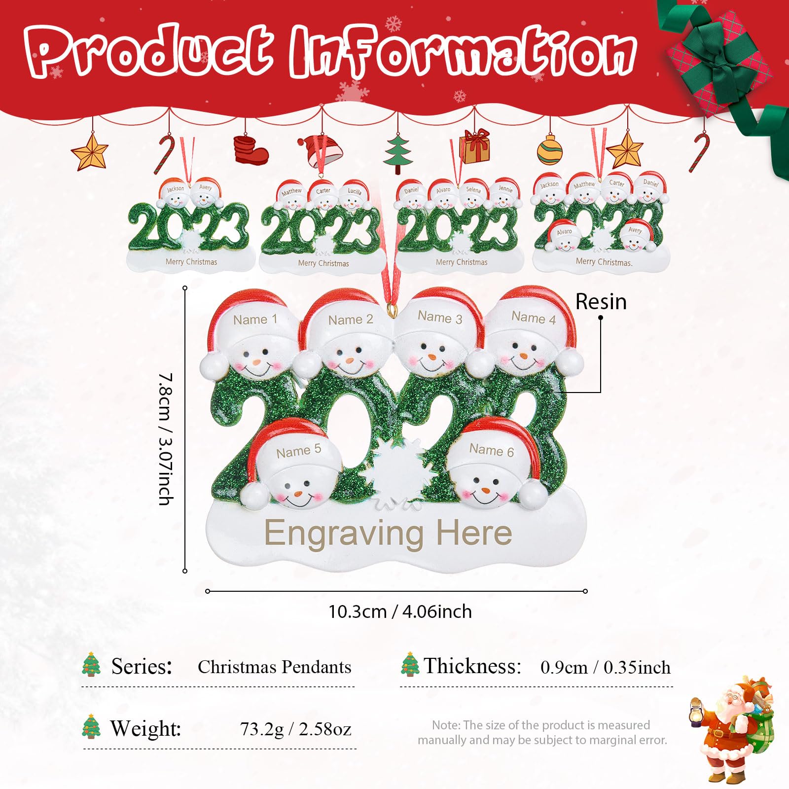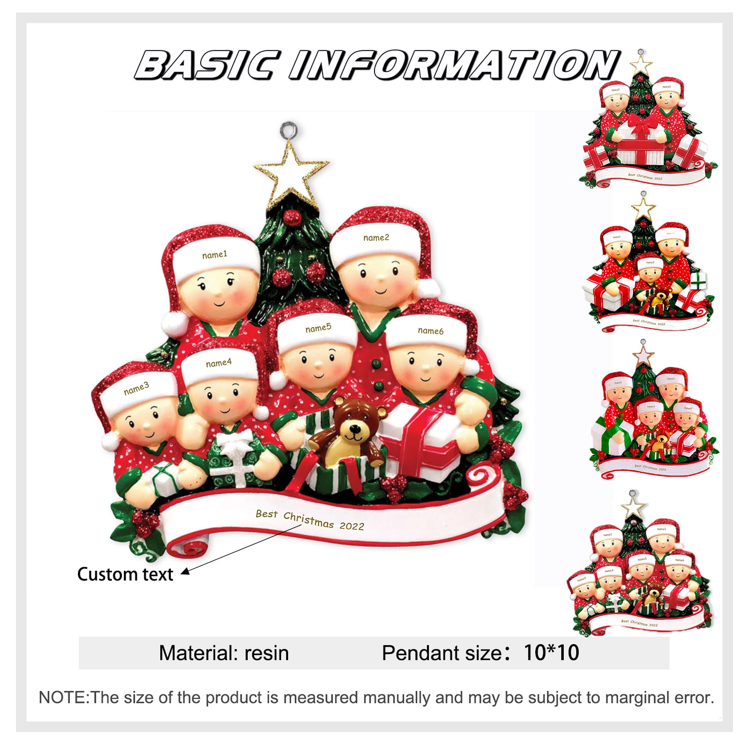 Notre décoration de Noël personnalisée est le moyen le plus significatif de répandre les joyeuses vacances avec votre famille. Promo Set De 5 Décorations Pour Bûche De Noël chez Trafic Design unique pour chaque personne, plein de créativité et de signification pour accompagner une tradition de vacances que toute la famille adorera. Décorations Noël Familiales Personnalisées Résine Décoration De Noël Personnalisée Pour La Famille 2023 Décorations Décoration Noël Familiale 2 à 7 Noms Décorations de Noël personnalisées 2023 : cliquez sur le bouton « Personnaliser maintenant » pour créer vos propres décorations de sapin de Noël. Durable et réutilisable, avec un design tridimensionnel 3D sur le devant, il semble multidimensionnel, chaque pendentif de sapin de Noël est juste si mignon et a du caractère. Décorations de Noël Personnalisées – Cadeaux uniques pour la famille... Les produits incluent des cadeaux personnalisés pour diverses catégories telles que les bijoux et autres articles ménagers pour la maison. Décoration de Noël pour sapin de famille : vous pouvez utiliser cette décoration comme cadeau pour les grands-parents, les petits-enfants, les belle-mères, les sœurs, les amoureux, les parents ou regarder des films de Noël. Promo Décorez Votre Sapin Avec Des Décorations Personnalisées chez Cora... Le moyen idéal de montrer l'amour à la famille et aux amis. Embellissez votre sapin de Noël : ces charmantes décorations de Noël familiales sont un excellent ajout à tout sapin de Noël. Ou utilisé comme vœux de Noël, petit cadeau ou cadeau longue distance. Décorations de Noël personnalisées en résine 3D avec personne de famille - 2 à 7 noms - Décorations de Noël 3D en résine - 2023 Gemszoo personnalisé : 90 jours valides pour l'échange ou le remboursement.